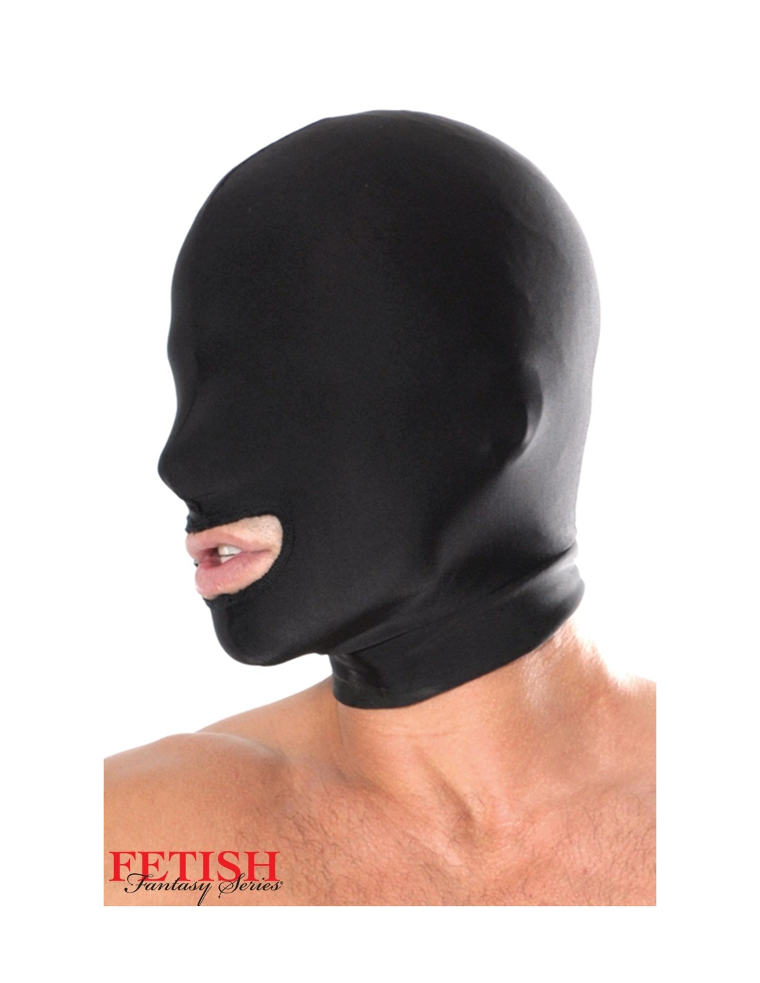 Cette confortable cagoule est prévue pour s'étirer complètement sur la tête. Son tissu en Spandex est mince et léger, il laisse respirer et entendre. Mais votre soumis(e) ne peut rien voir et sa bouche reste offerte...