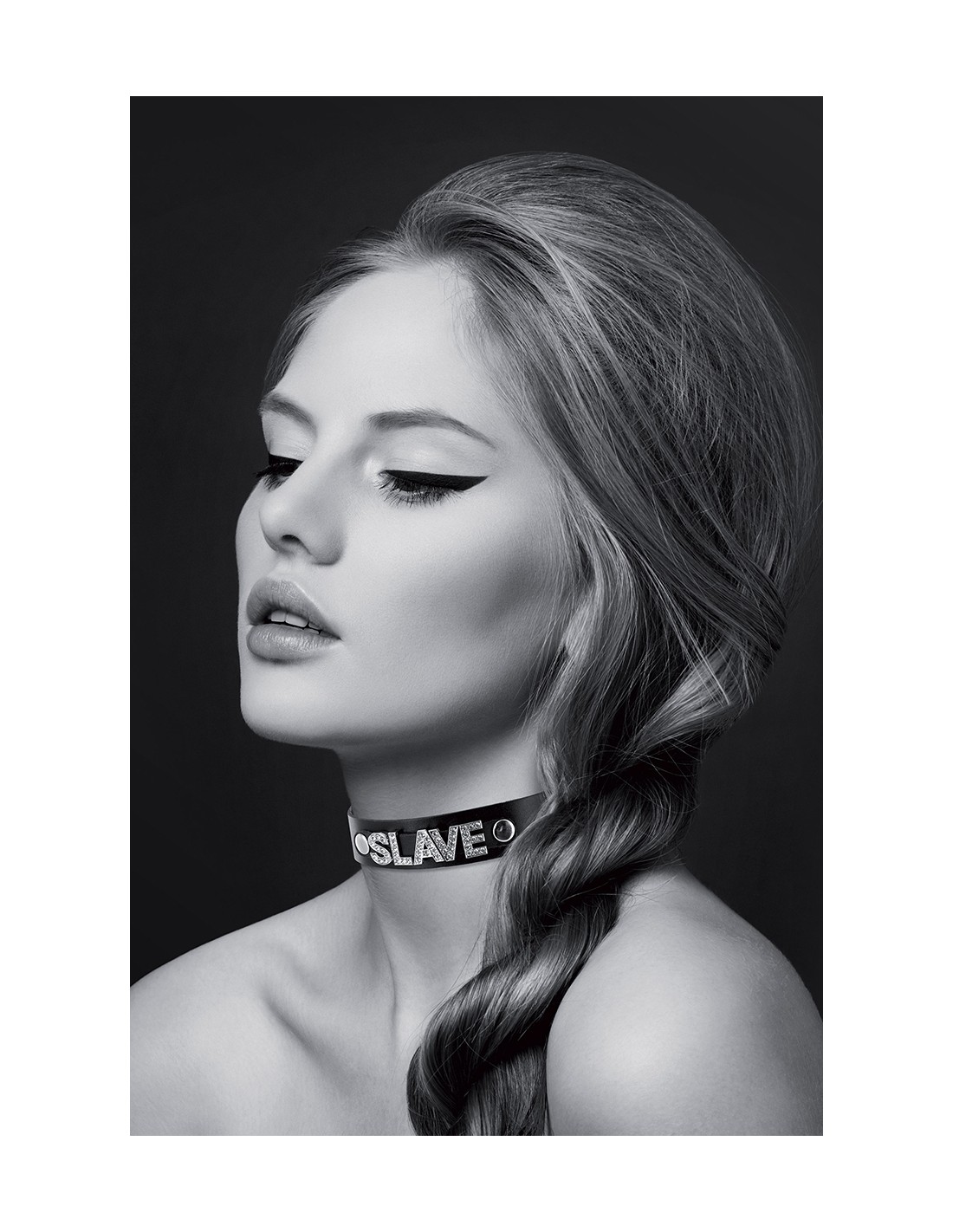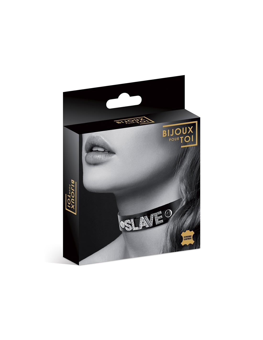 Avec le mot "SLAVE" en bijou strass en relief sur le devant, ce collier noir, ras de cou, de la marque Bijoux pour toi, affichera clairement votre côté soumise et coquine.