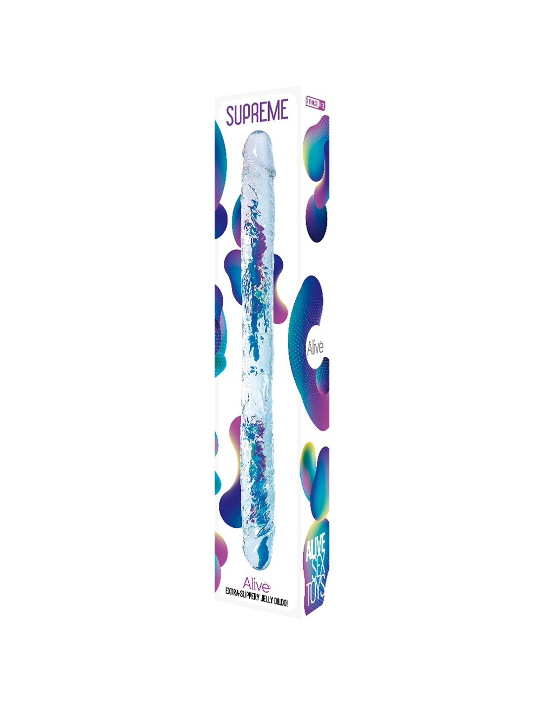 Der Double Dong Supreme der Marke Alive ist ein großes Sexspielzeug (40 x 4 cm) aus Gelee, flexibel, ideal zum Spielen zu zweit oder zum Üben der Doppelpenetration alleine.