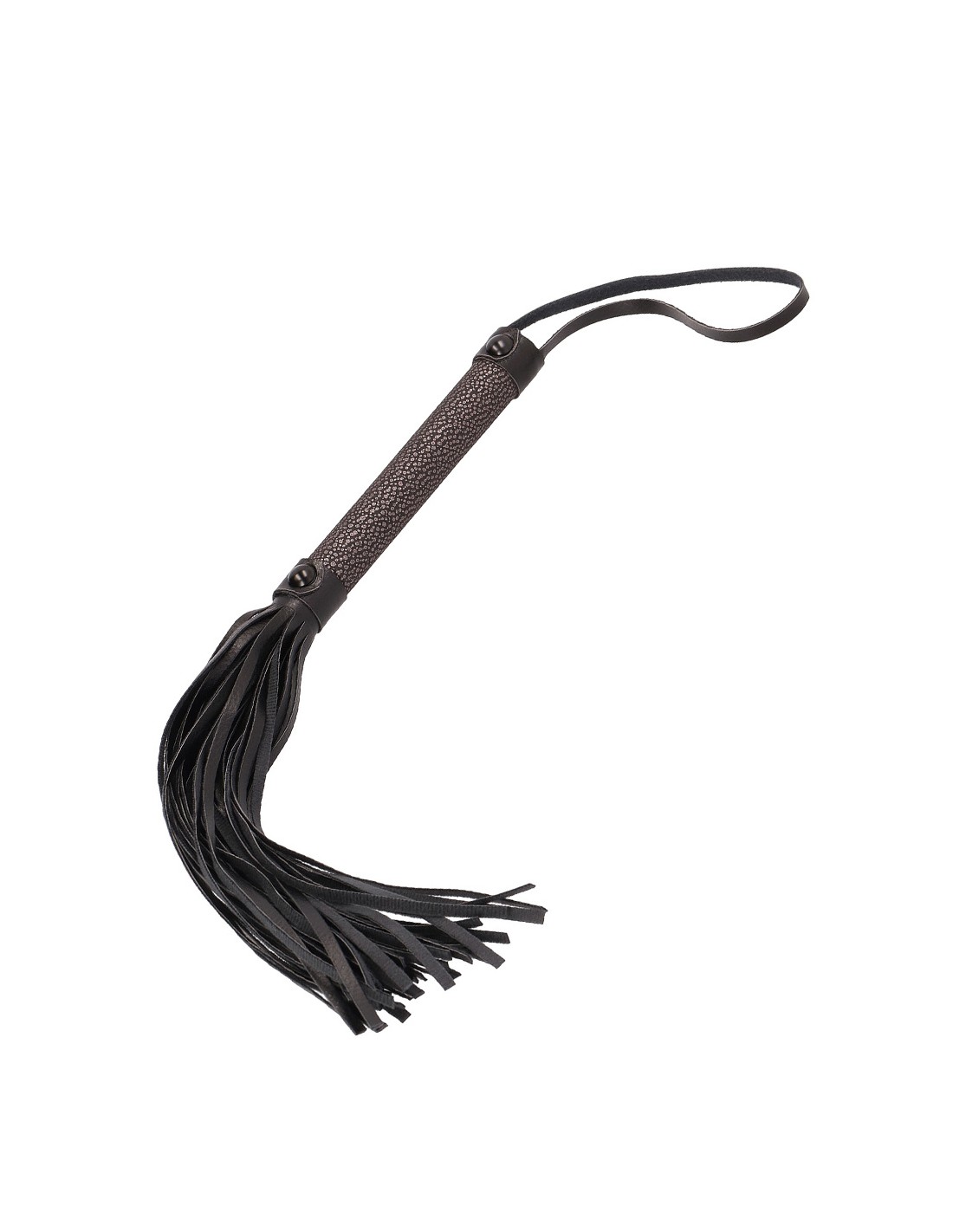La marque Ouch!, spécialiste des accessoires SM présente "Elegant Flogger", un élégant martinet d'initiation au BDSM en cuir reconstitué, néoprène et bois d'une longueur totale de 39 cm.