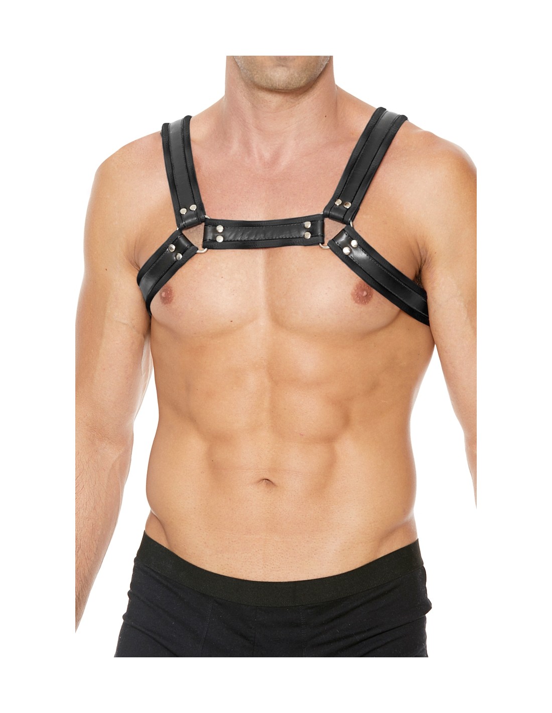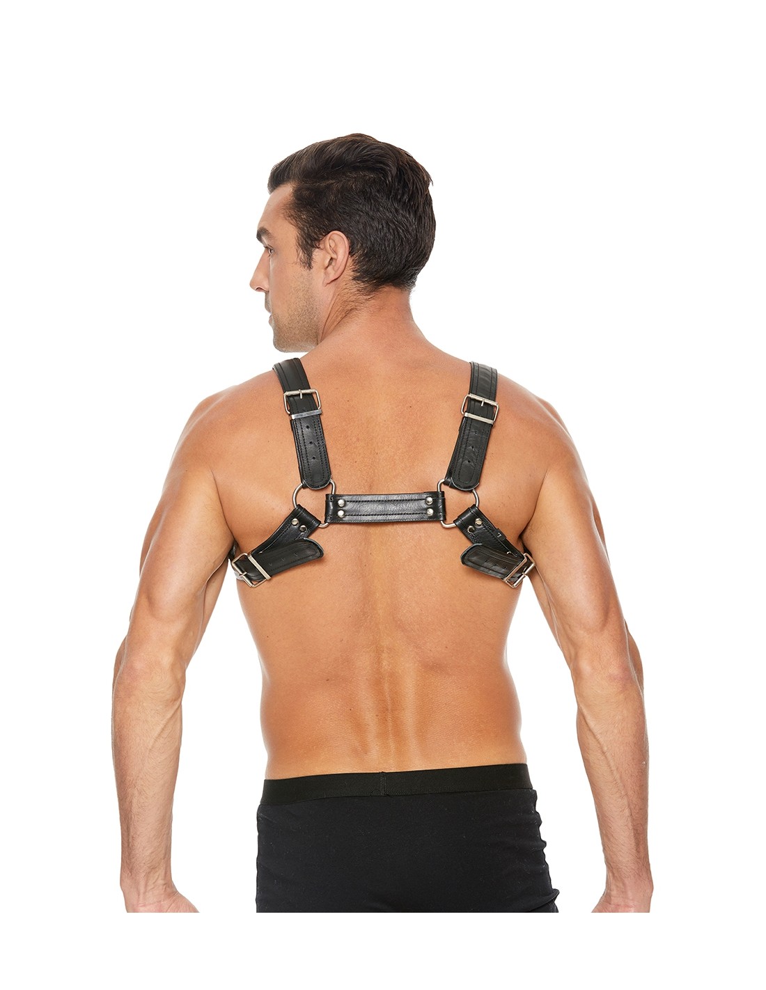 Pour les adeptes de la mode fétichiste, la marque Ouch! a conçu le "Chest Bulldog Harness", un magnifique harnais noir en cuir véritable, orné de fermetures en acier inoxydable.