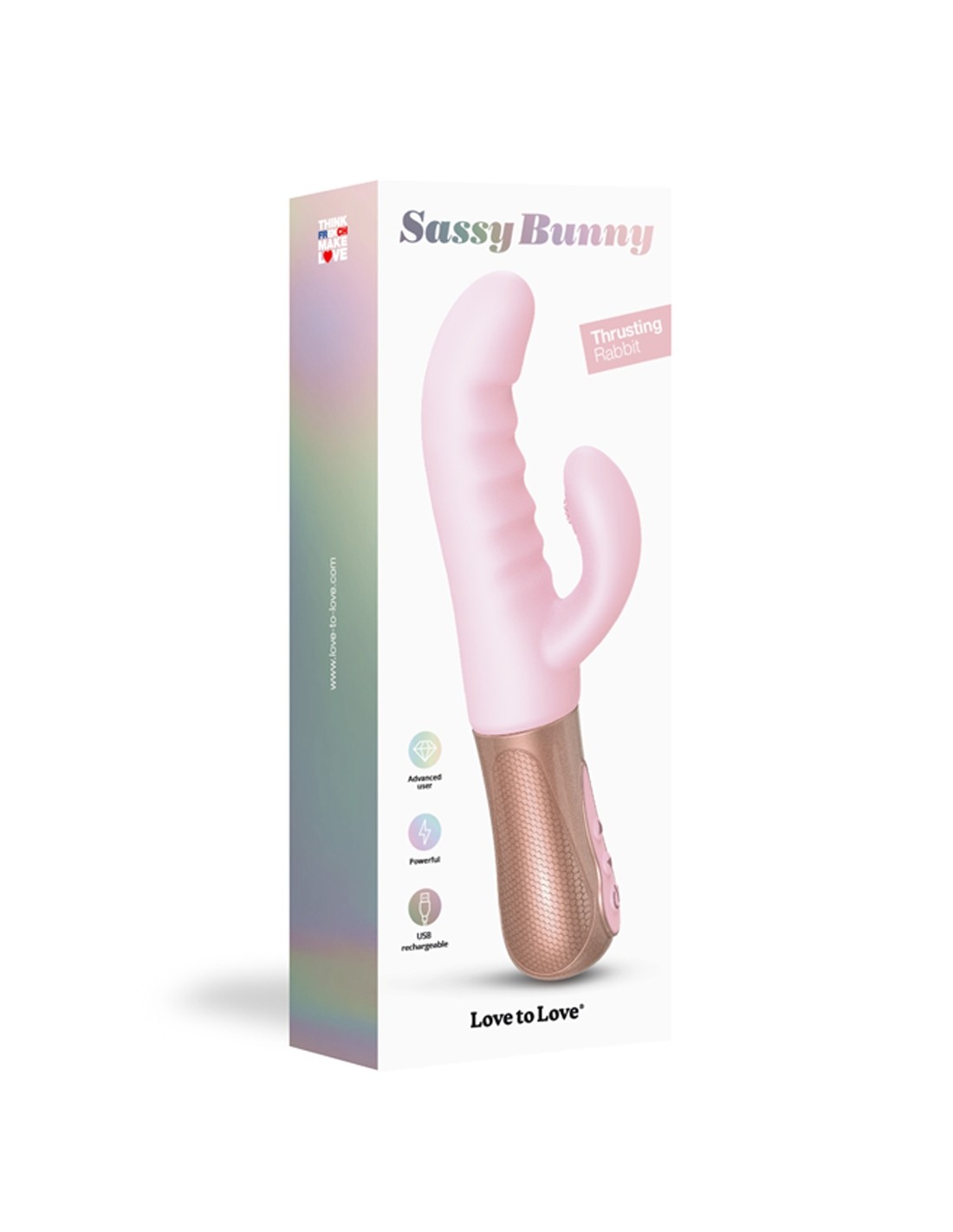 „Sassy Bunny“ der Marke Love to Love ist für Liebhaber starker Empfindungen gedacht und ein leistungsstarker Vibrator, der auf die doppelte Vaginal- (G-Punkt) und Klitorisstimulation spezialisiert ist und mit einer doppelten Hin- und Her- Technologie ausgestattet ist, um Ihren G-Punkt zum Kentern zu bringen Klopftechnik zur Entzündung des Klitorisbereichs.