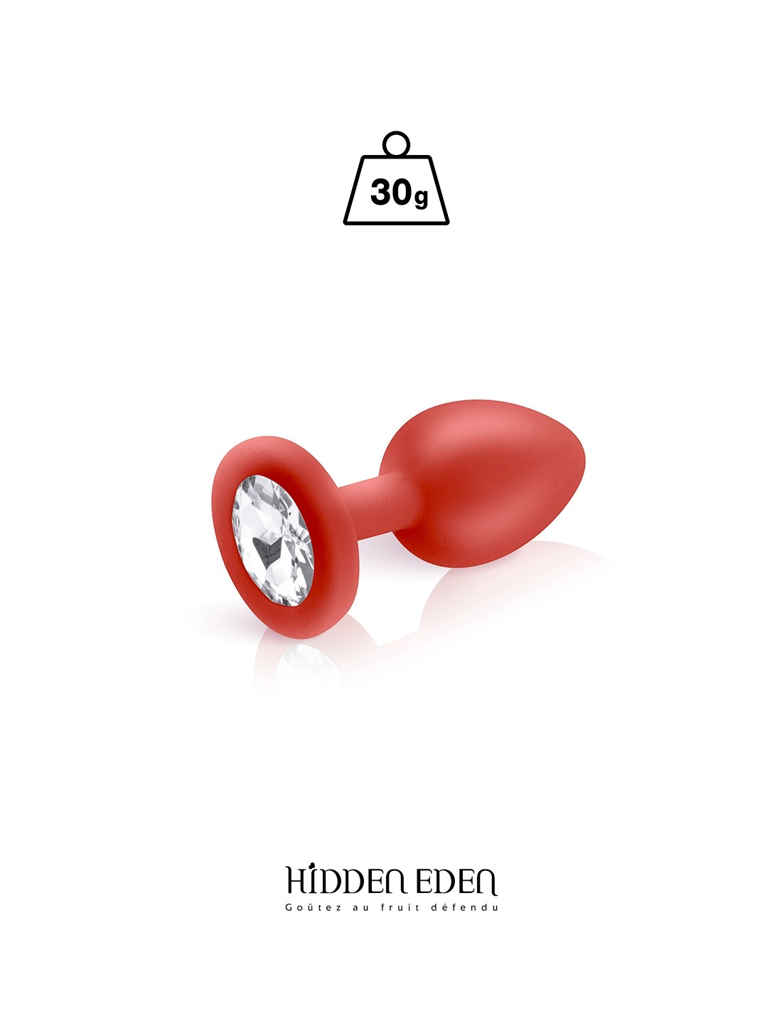Die Marke Hidden Eden lädt Sie ein, diesen herrlichen, juwelenbesetzten Plug zu entdecken, der mit einem transparenten runden Strassstein verziert ist. Dieses Modell aus rotem Silikon wiegt 30 Gramm bei einer Gesamtlänge von 7,2 cm und einem durchschnittlichen Durchmesser von 2,7 cm.