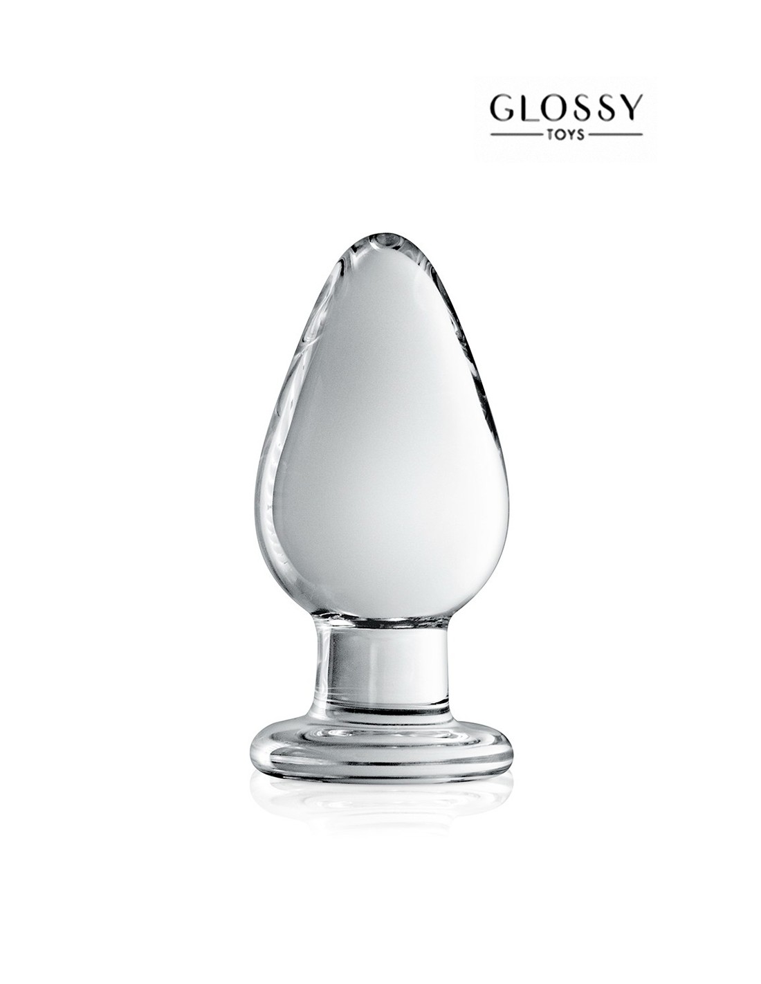 Ein luxuriöses Analsexspielzeug aus unzerbrechlichem, durchscheinendem Glas mit einer Ogivenform, die das Eindringen erleichtert, und einer breiten Basis, die das Einführen des Plugs ermöglicht, ohne dass das Risiko besteht, zu weit zu gehen.