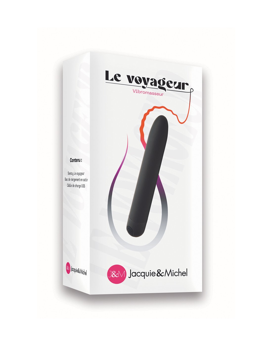 „Le voyageur“ von Jacquie und Michel ist ein wiederaufladbarer Vibrator, leicht und kompakt, kraftvoll, aber diskret, der weder gesehen noch bekannt in Ihren Koffer passt.