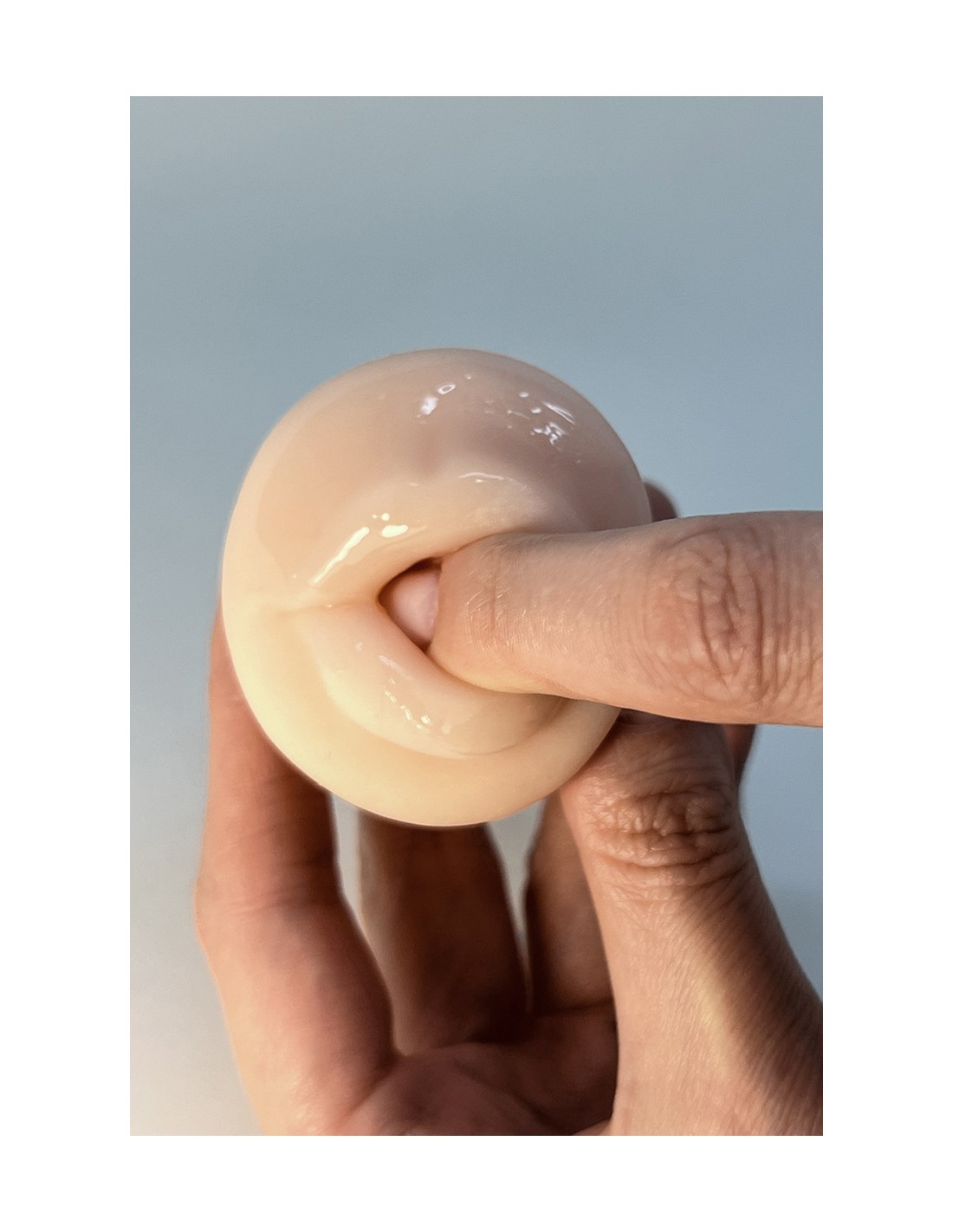 Ein hyperrealistischer Masturbator in Form eines Mundes im Miniformat.