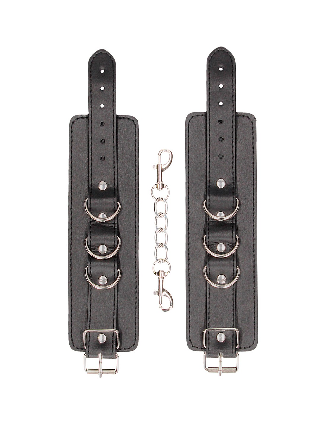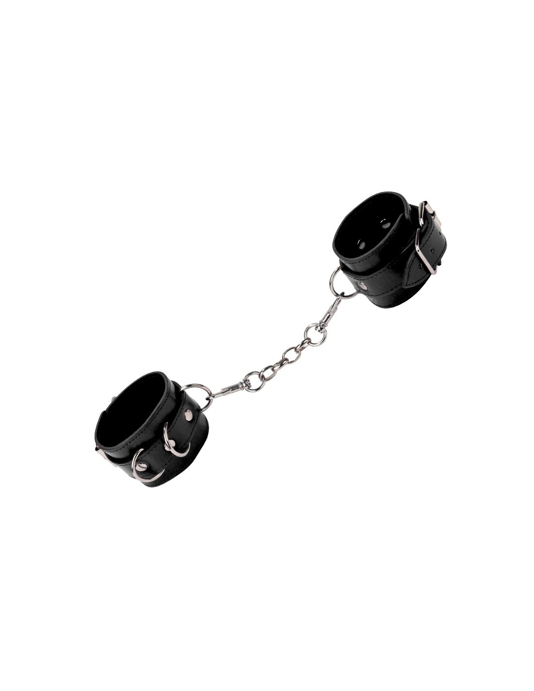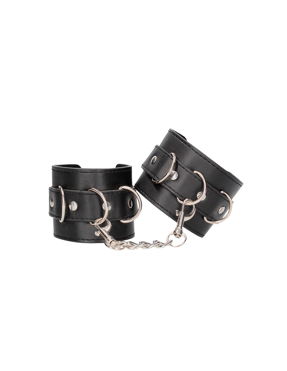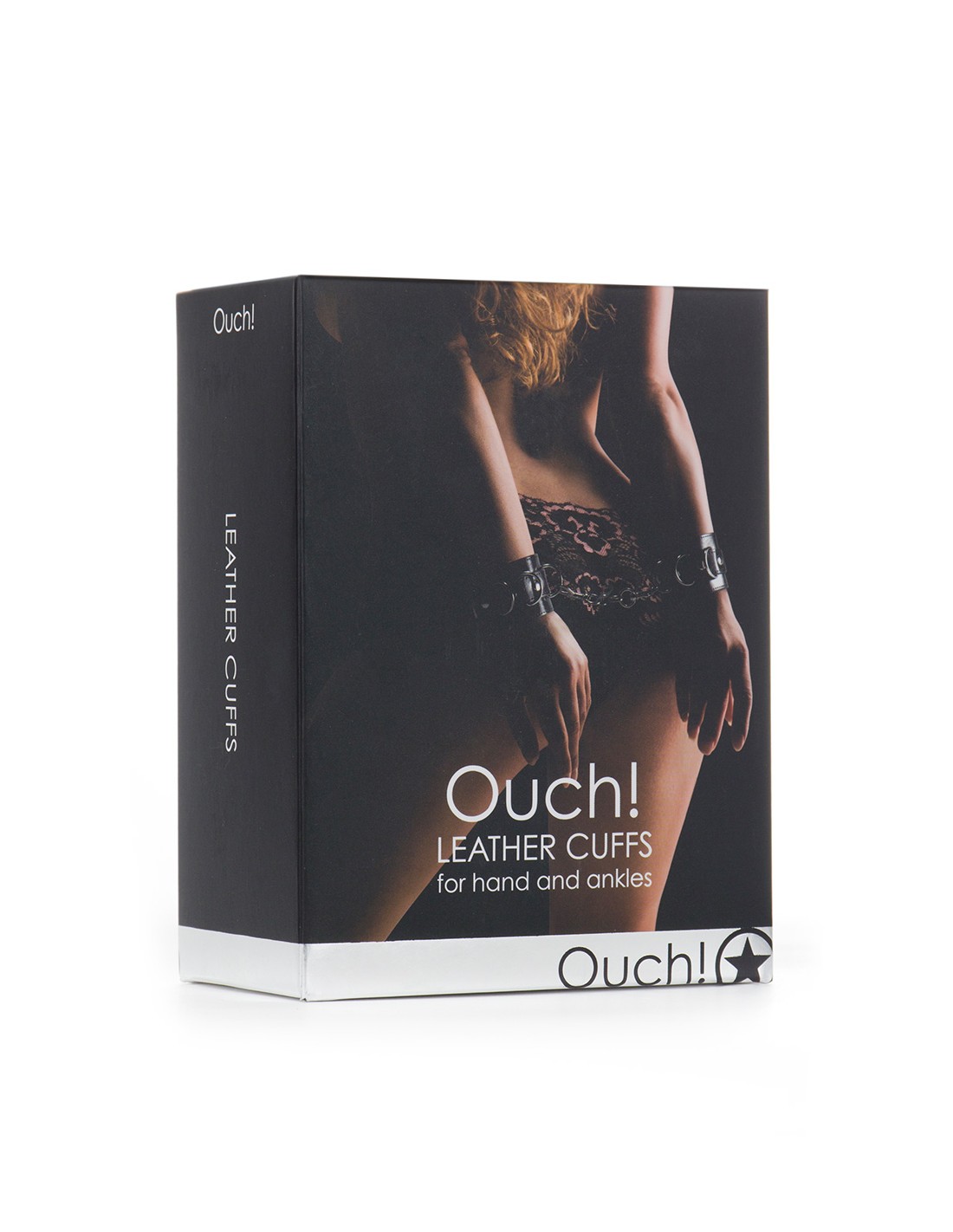 Paire de Menottes ajustables haute qualité, pour poignets ou chevilles, en cuir et métal, coloris noir, proposées par la marque Ouch!