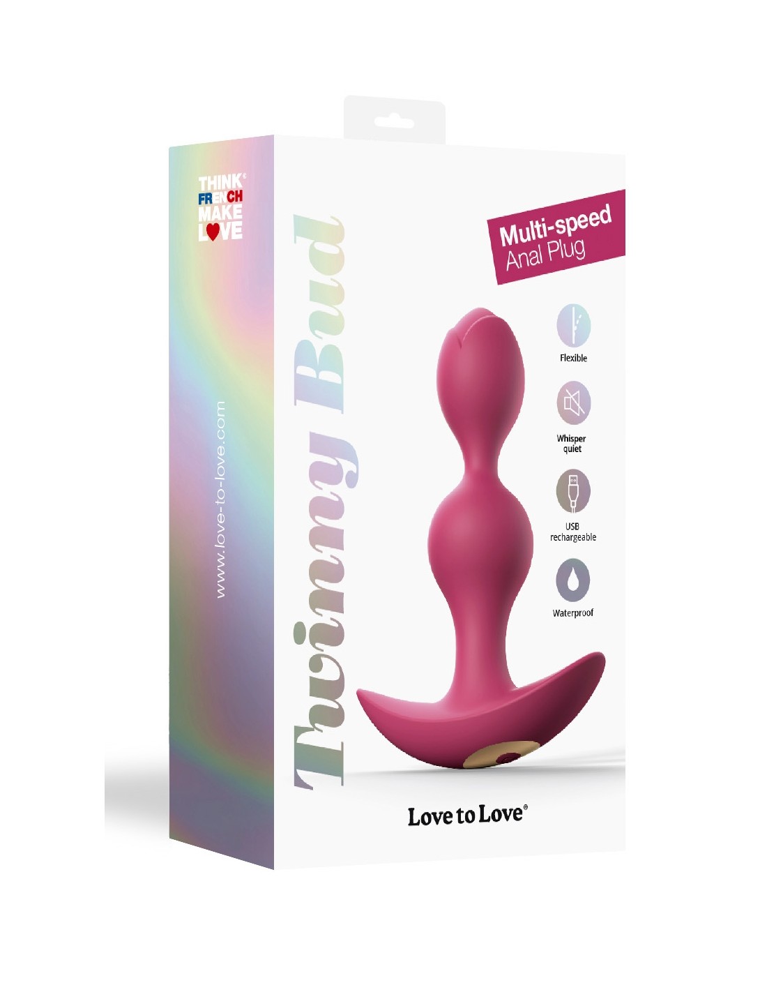 Twinny Bud besteht aus flüssigem Silikon und ist ein ultraweicher und flexibler Analstimulator für Männer und Frauen. Seine ergonomische Form ermöglicht eine ideale Analpenetration, während seine 2 vibrierenden Innenperlen sanft die Analwände streicheln und in zehn Intensitätsstufen vibrieren (1 Motor + 10 Vibrationsmodi).