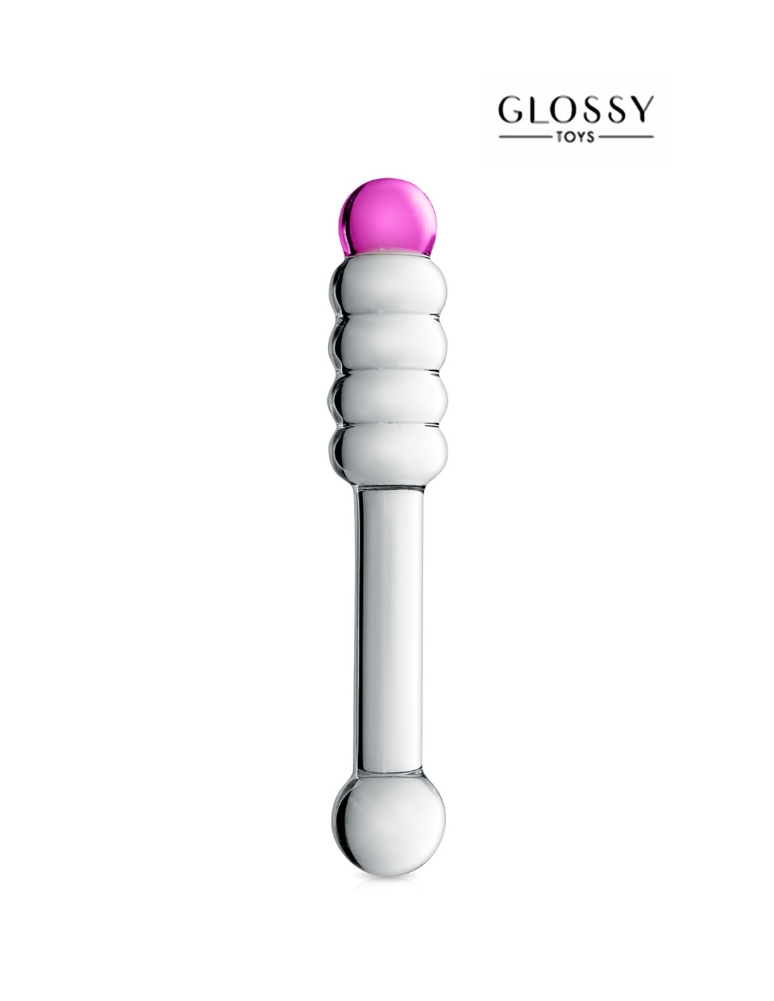 Un luxueux sextoy en verre incassable translucide avec une forme tendue et droite d'un côté, et annelée de l'autre, pour varier les plaisirs en fonction de l'extrémité utilisée.