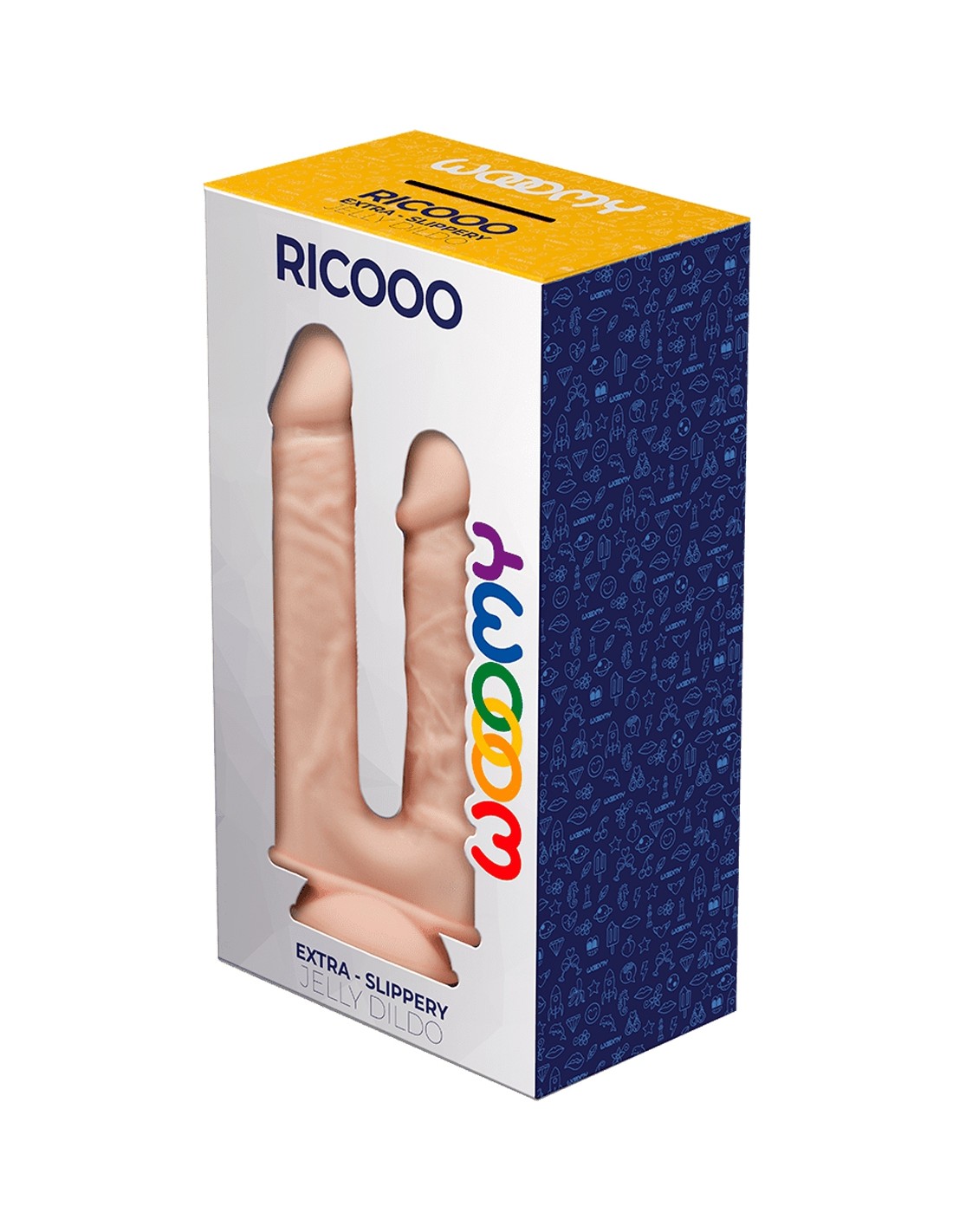 ¡La marca Wooomy presenta Ricooo, un consolador dedicado a la doble penetración, montado en una potente ventosa para ofrecerte momentos de intenso placer!