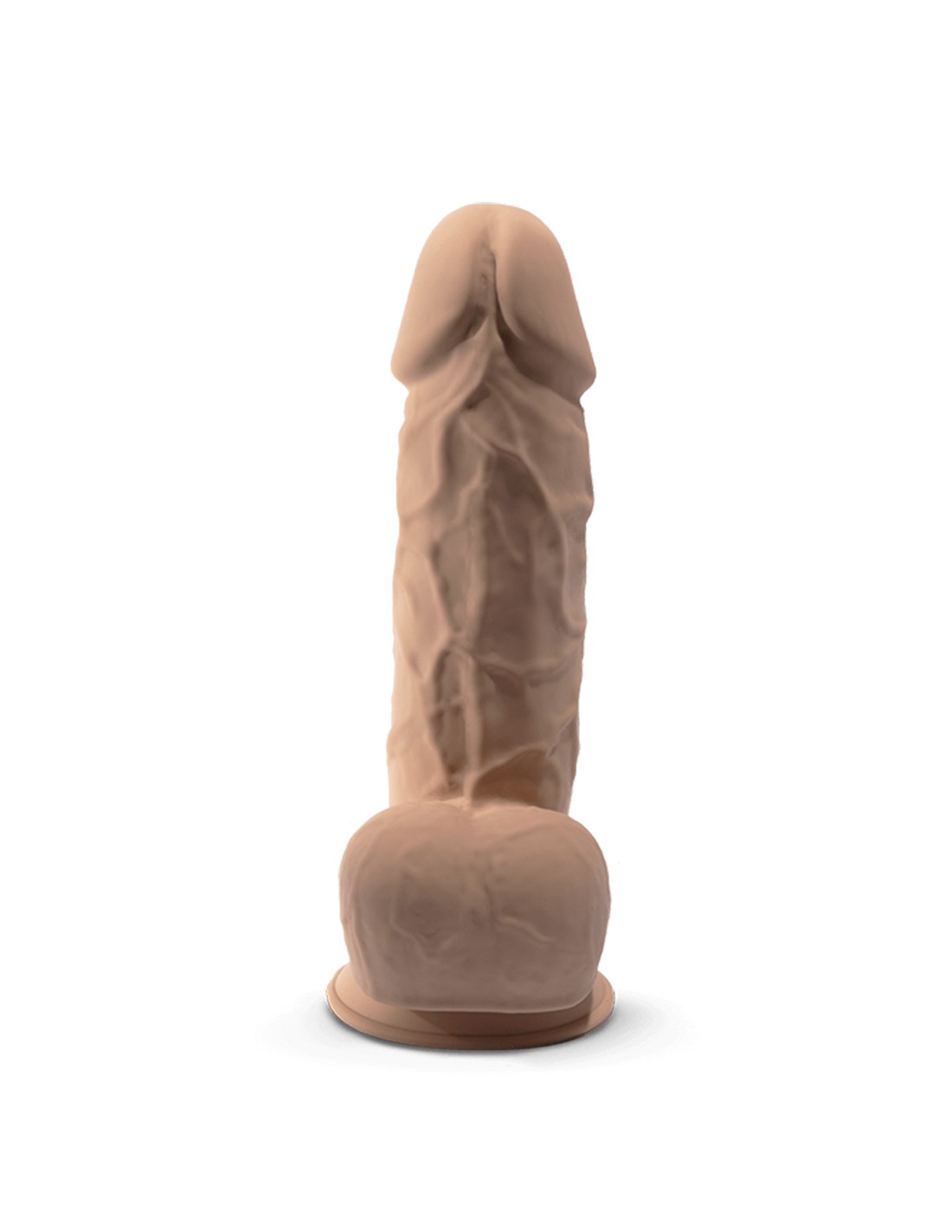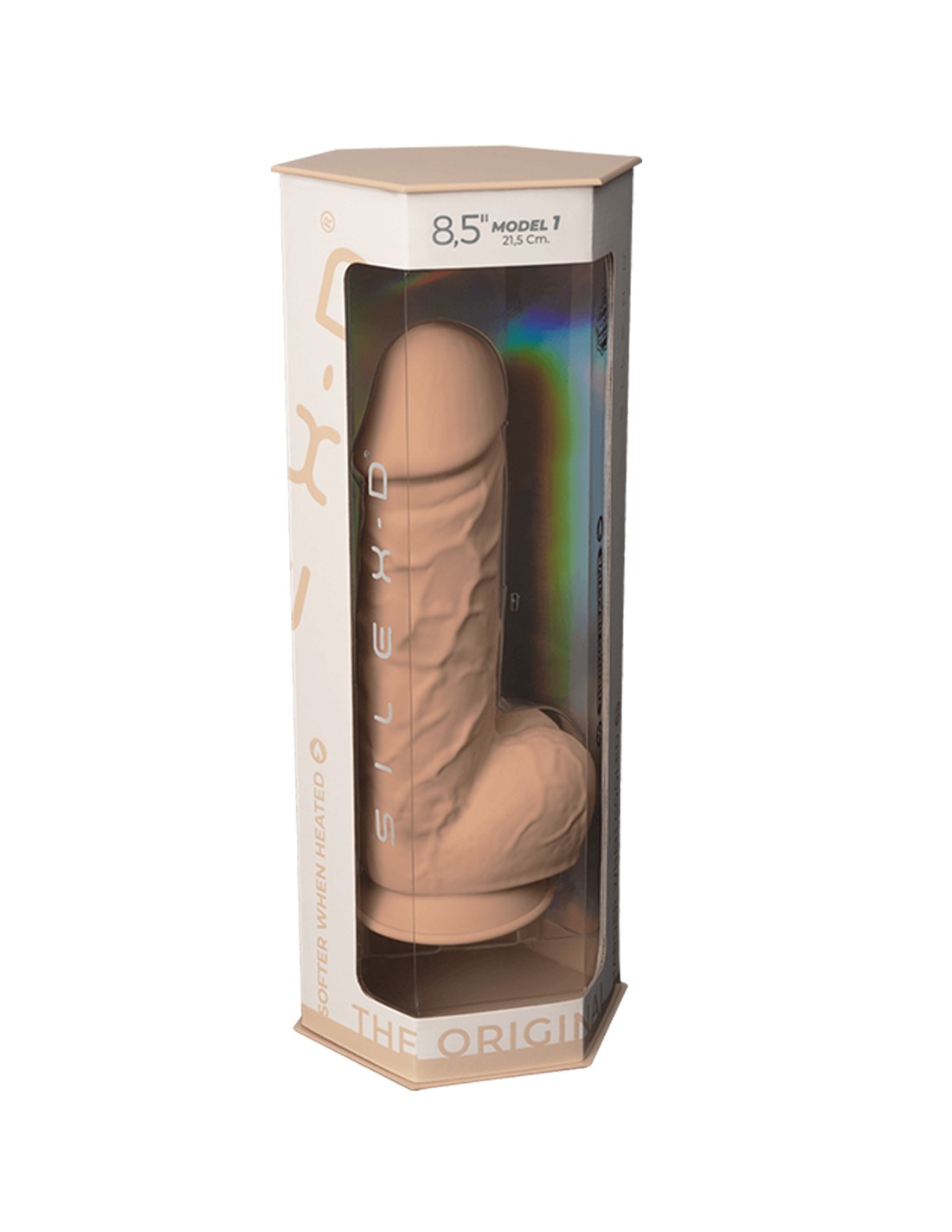 Diseñado en silicona Premium de doble densidad , la marca SilexD ofrece a los amantes de los consoladores realistas con testículos este juguete sexual hiperrealista con memoria de forma , de 21,5 cm de largo y 4,8 cm de diámetro.