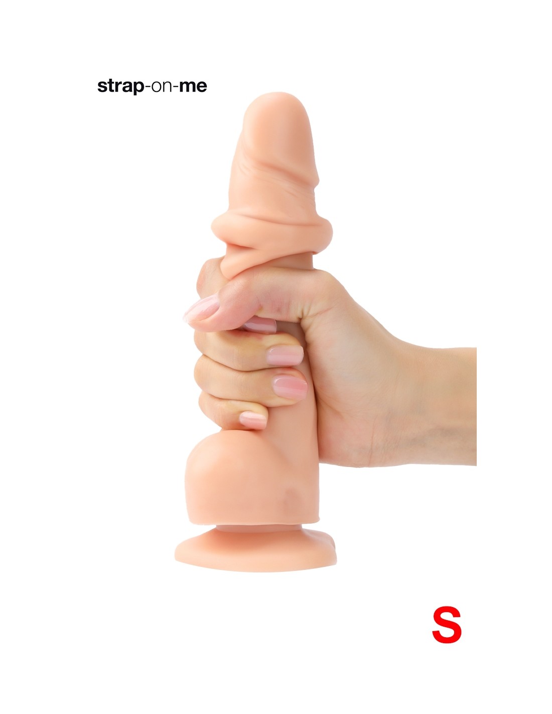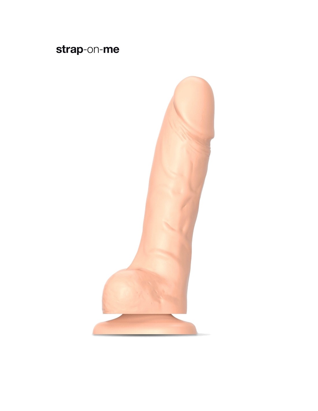 El dildo realista de piel deslizante Strap-On-Me es adaptable a un arnés provisto de un anillo tipo O-ring. Se puede utilizar en modo strap-on y no daña la piel gracias a su base muy fina.