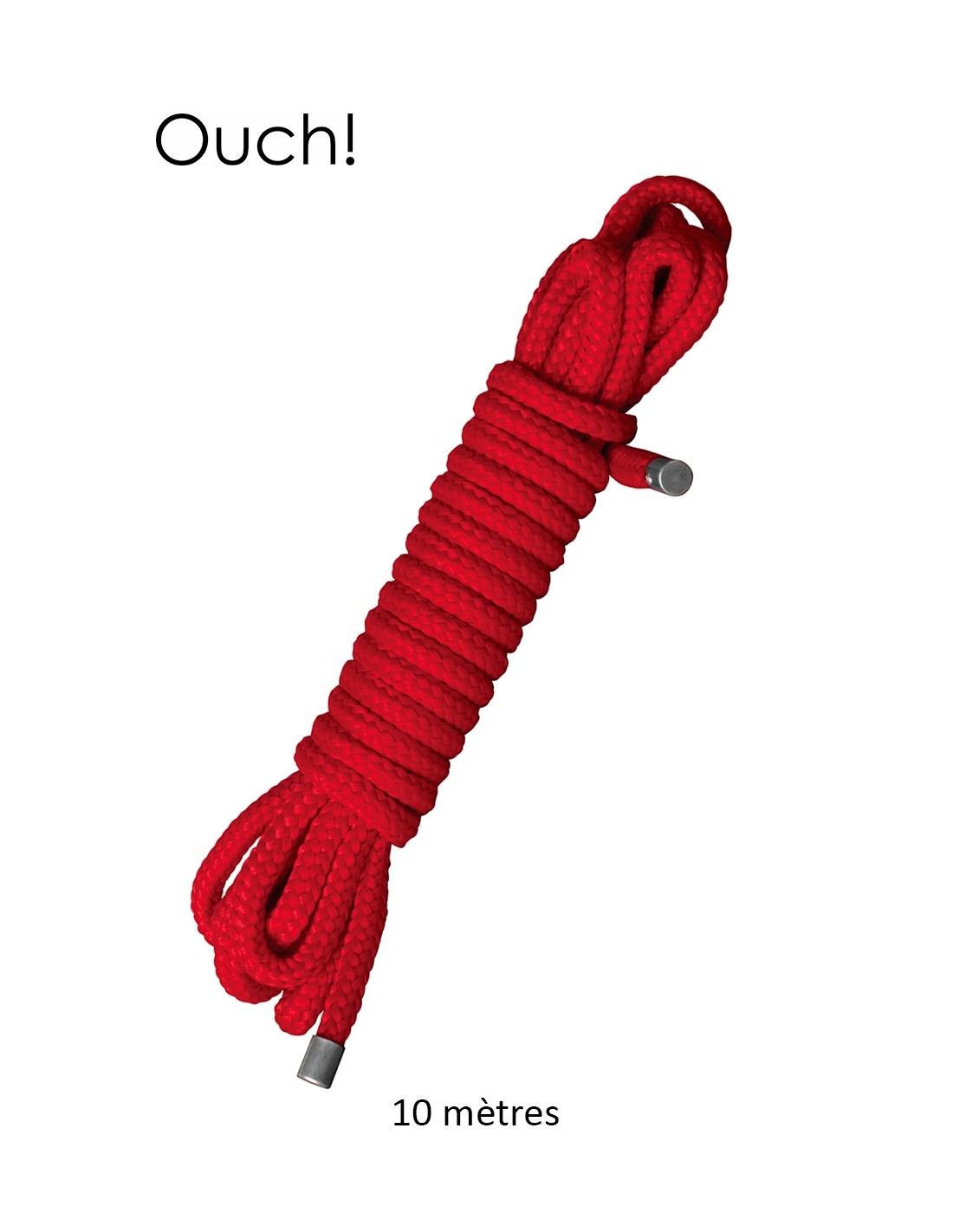 Pour les amateurs de bondage japonais, la marque Ouch! propose cette solide corde rouge "Japanese Rope", d'une longueur de 10 mètres, spéciale Shibari et jeux de bondage.