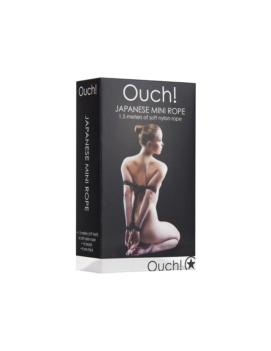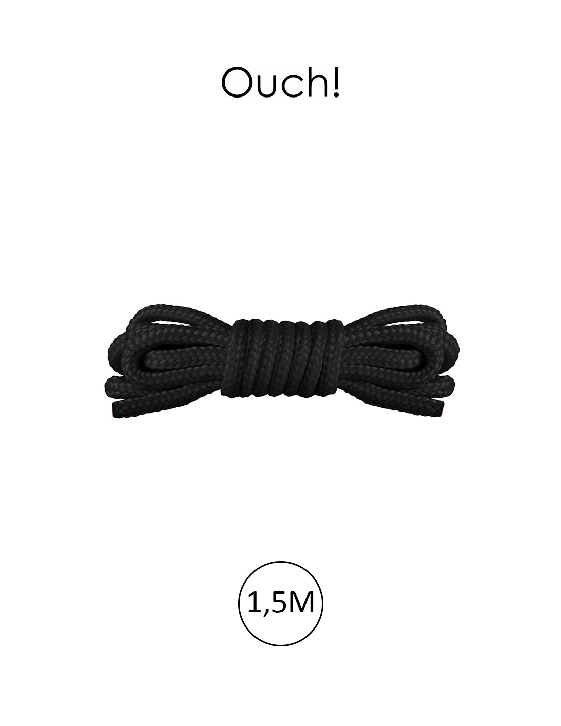Pour les amateurs de bondage japonais, la marque Ouch! propose cette corde noire "Japanese Mini Rope" en nylon, à la fois douce et solide, d'une longueur de 1,5 mètres, idéale pour attacher les chevilles ou les poignets.