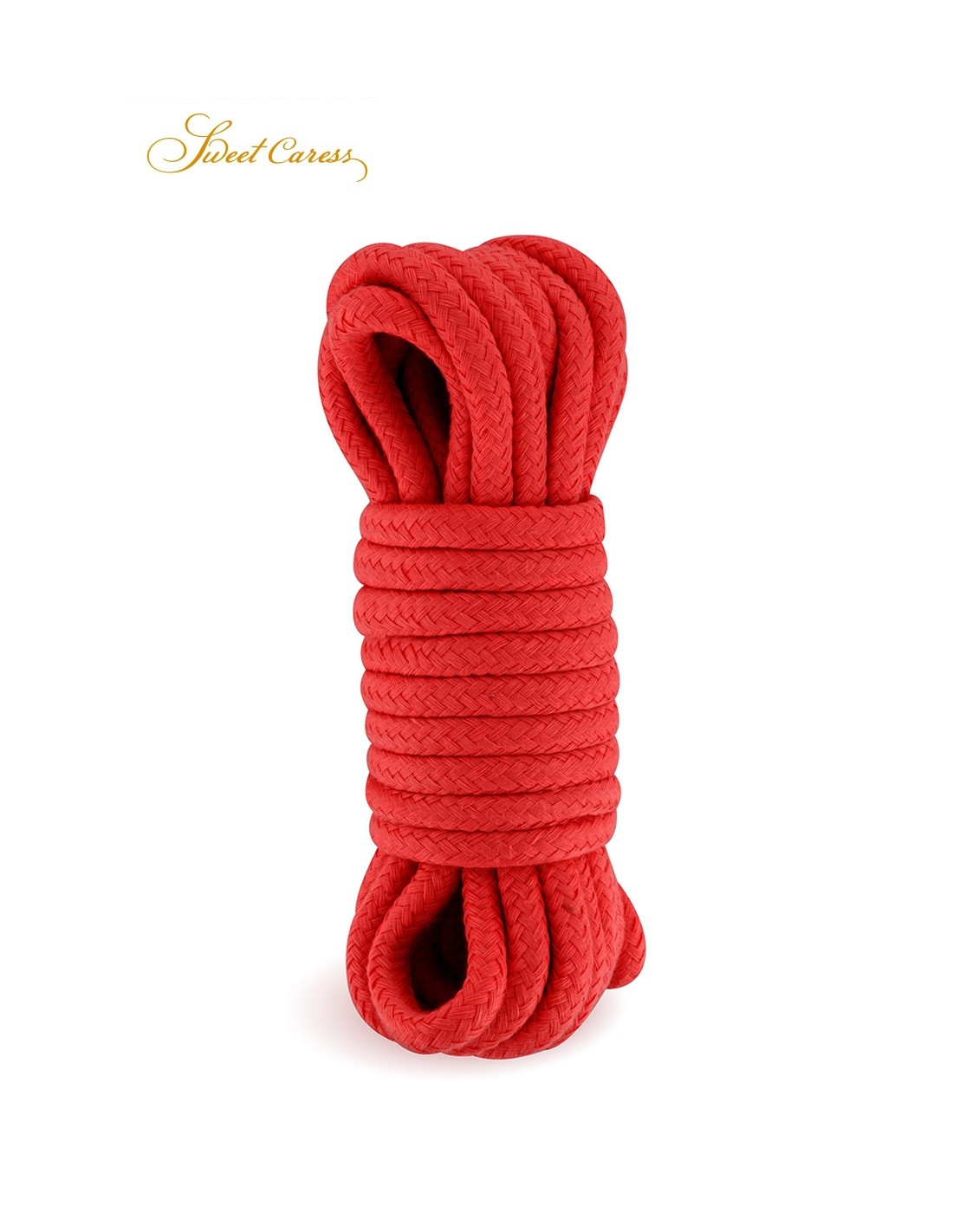 Corde de bondage en coton rouge, longueur 5 mètres, pour la pratique des jeux BDSM et du shibari, par Sweet Caress.