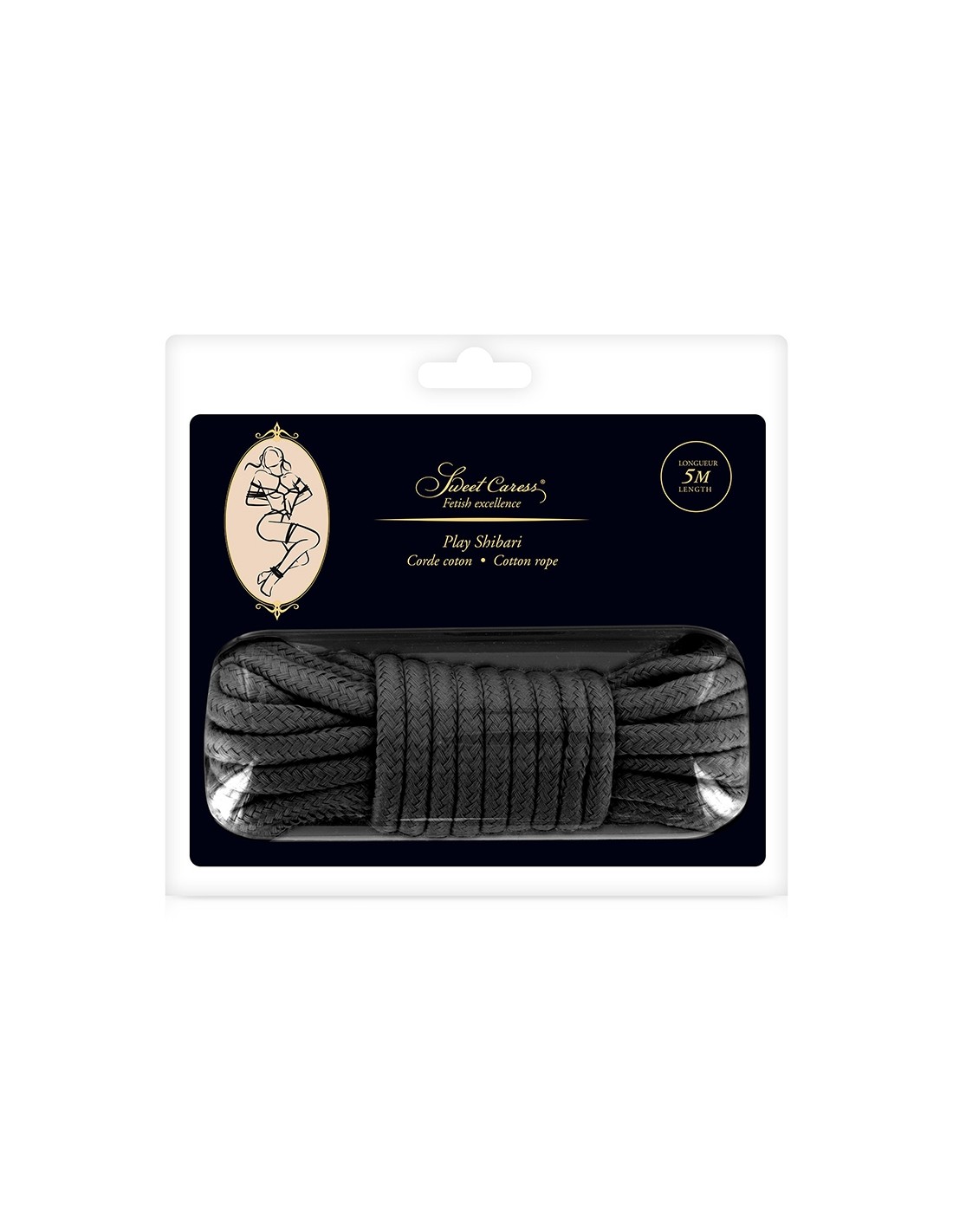 Corde de bondage en coton noir, longueur 5 mètres, pour la pratique des jeux BDSM et du shibari, par Sweet Caress.