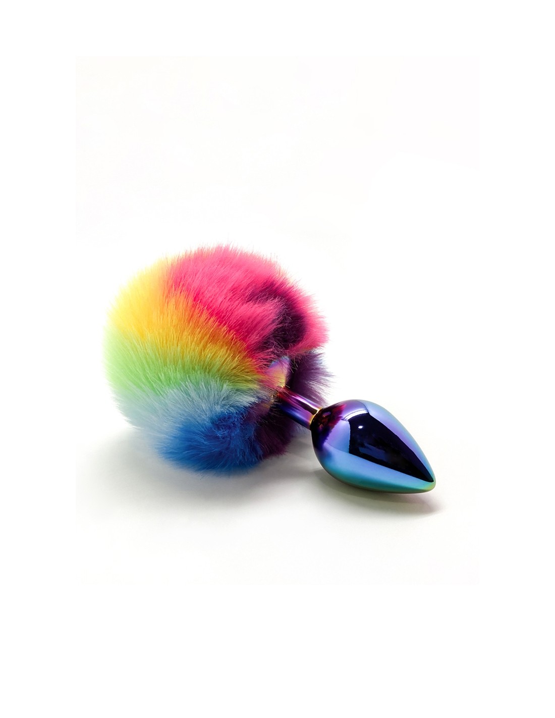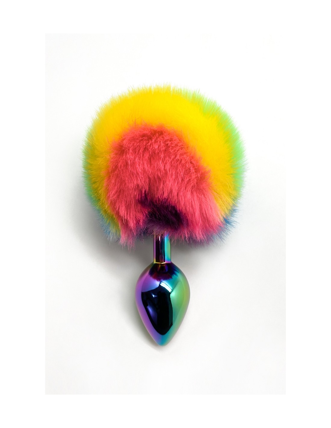 El plug anal Filippi Fluffy Raimbow está hecho de metal coloreado de calidad y no contiene ftalatos.