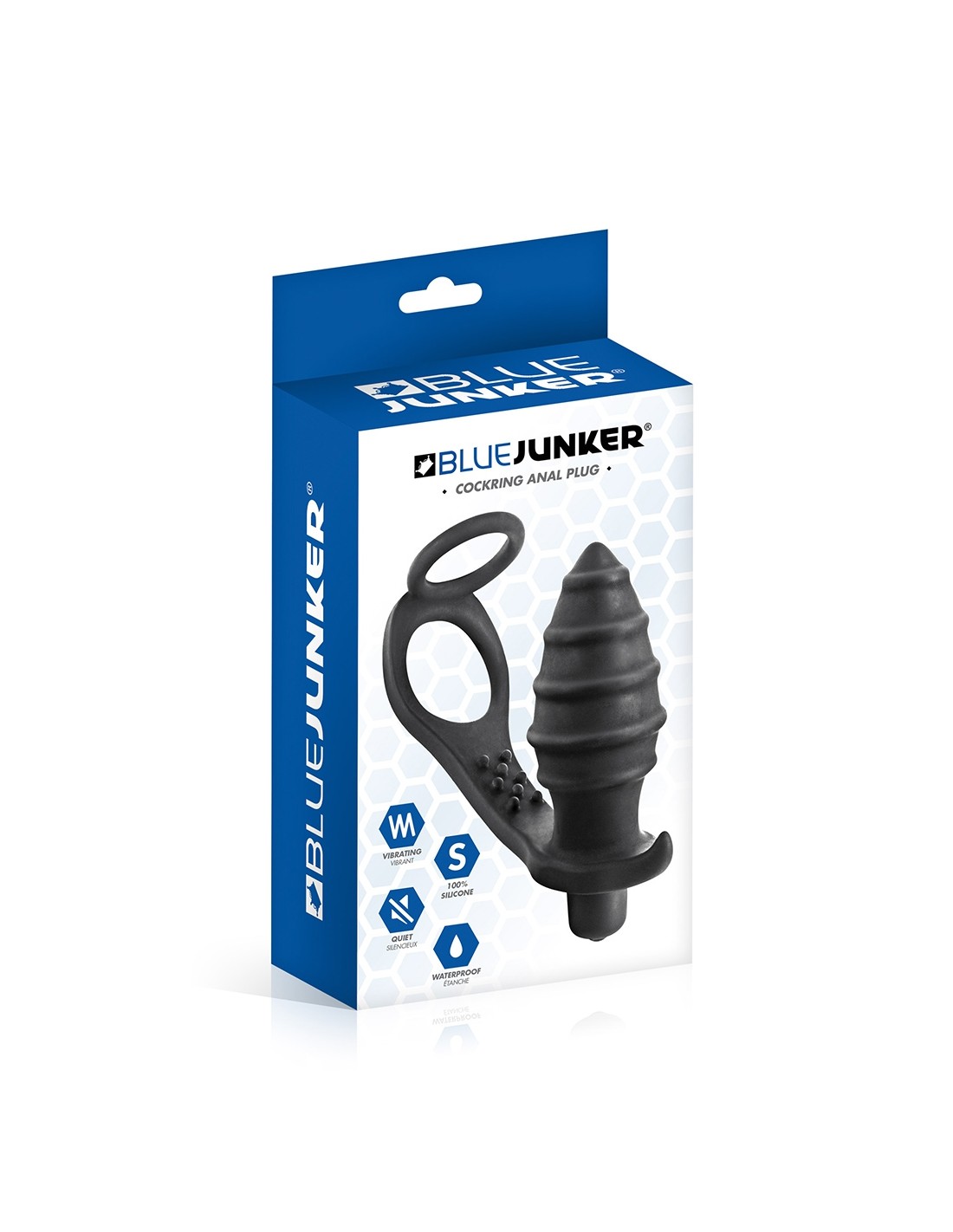 El plug anal vibrador con doble cockring de Blue Junker es un juguete sexual masculino 3 en 1 que satisfará a los amantes del placer anal mientras mejora la duración y calidad de su erección.