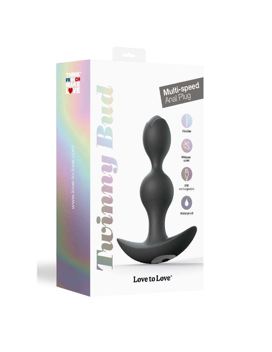 Diseñado en silicona líquida, Twinny Bud es un estimulador anal ultra suave y flexible para hombres y mujeres. Su forma ergonómica permite una penetración anal ideal, mientras que sus 2 bolas internas vibrantes acarician delicadamente las paredes anales y vibran en diez tonos de intensidad (1 motor + 10 modos de vibración).