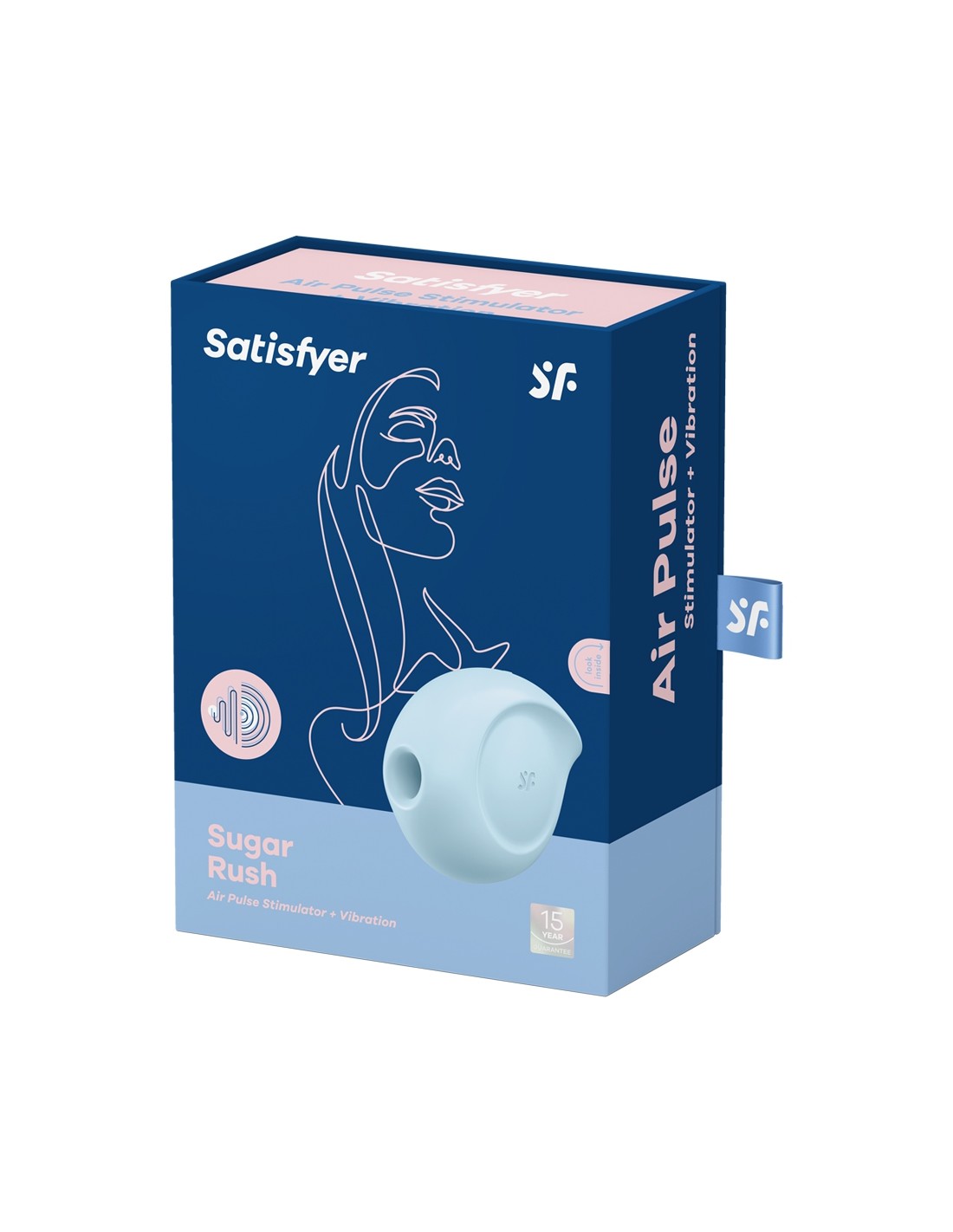 Con su forma compacta, su sexy diseño parecido a una gota de agua y su doble función de estimulador de clítoris, el "Sugar Rush" (modelo azul) de la marca Satisfyer te hará derretir de placer.