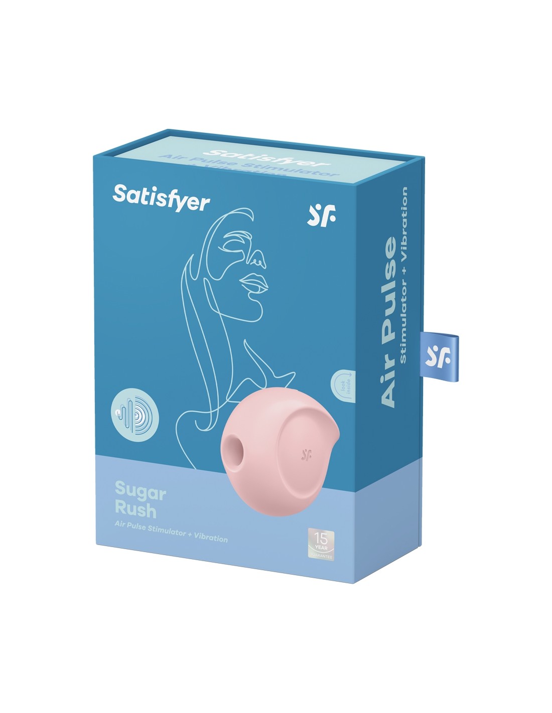 Con su forma compacta, su sexy diseño parecido a una gota de agua y su doble función de estimulador de clítoris, el "Sugar Rush" (modelo rosa) de la marca Satisfyer te hará derretir de placer.