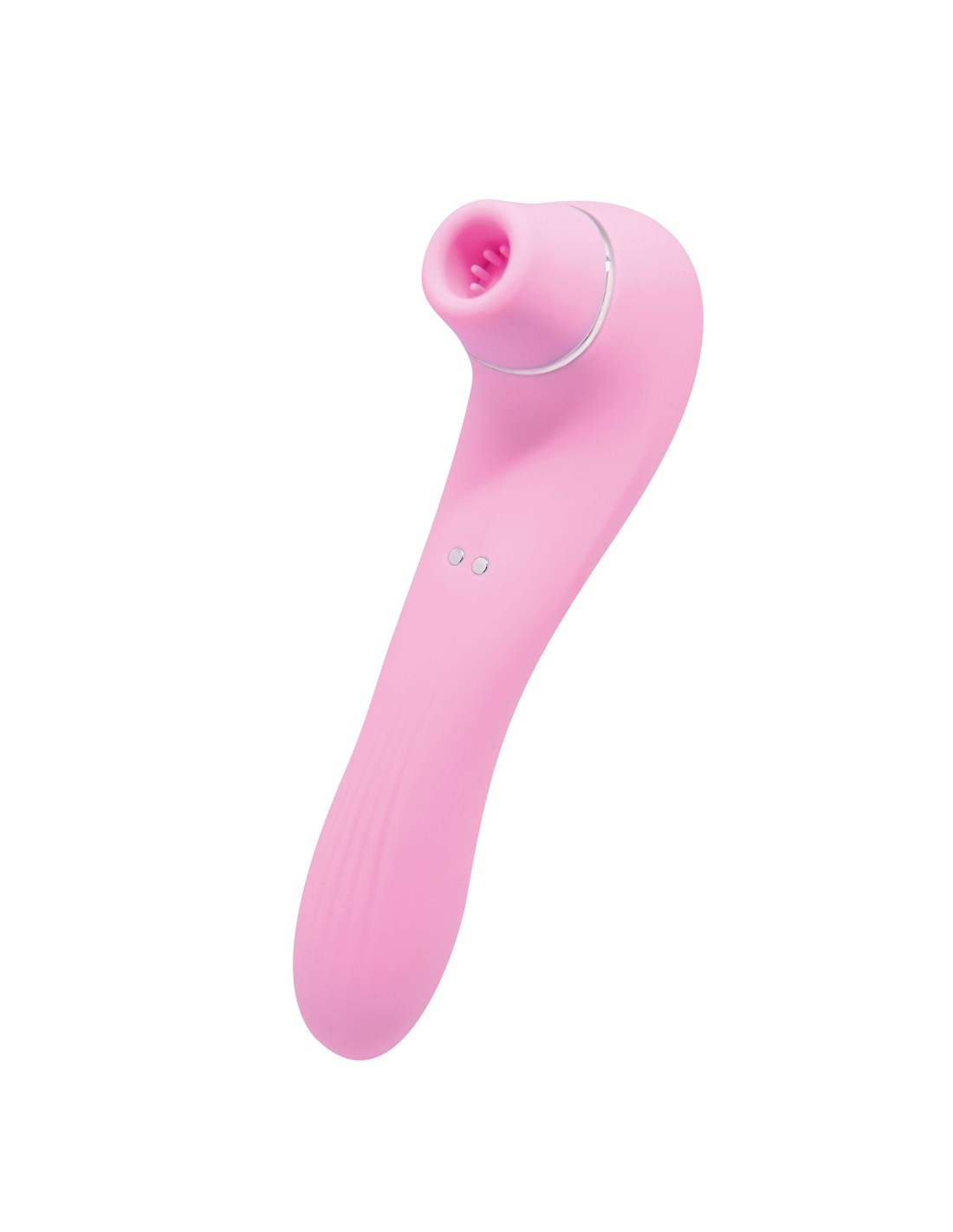 Dédié aux amatrices de plaisirs multiples, la marque Wooomy présente Smooch rose, un sextoy suceur de clitoris d'un côté et de l'autre un vibromasseur pour la pénétration.