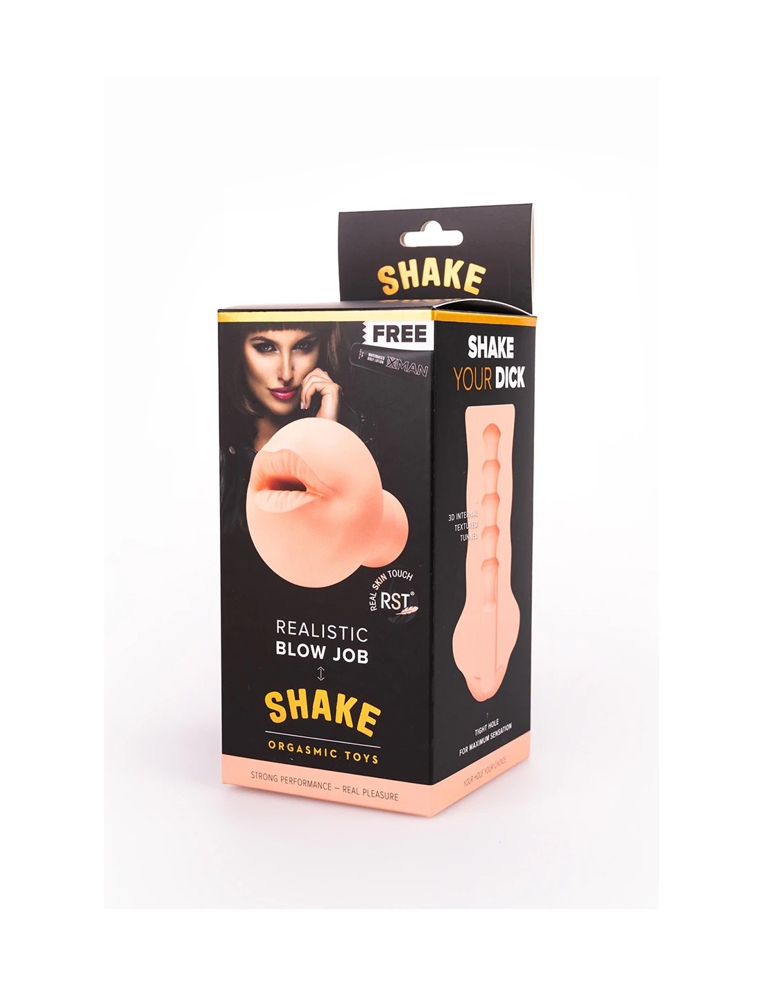 La marca Shake ofrece "Realistic Blow Job", un masturbador masculino premium que reproduce una boca realista , en 3 dimensiones, tamaño real, con textura hiperrealista Real Skin Touch.