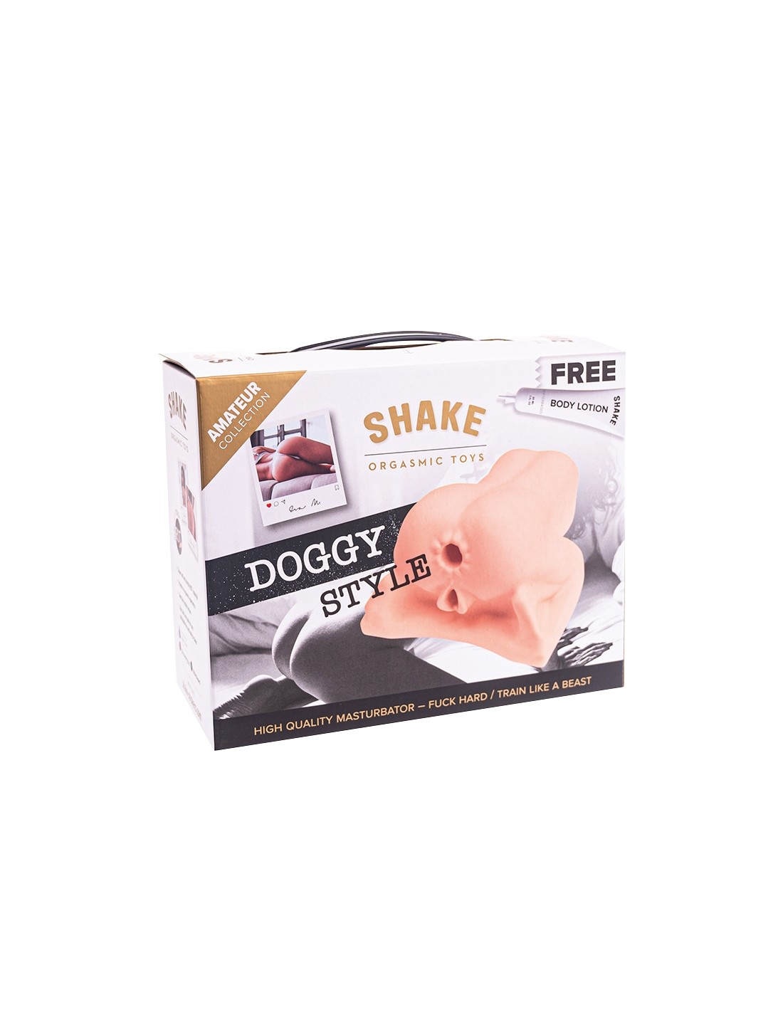 Descubre el masturbador Shake Doggy Style de alta calidad: un trasero ultrarrealista en posición de perrito, con una vagina abierta y un ano completamente dilatado, ¡hecho para darte placer cuando lo desees!