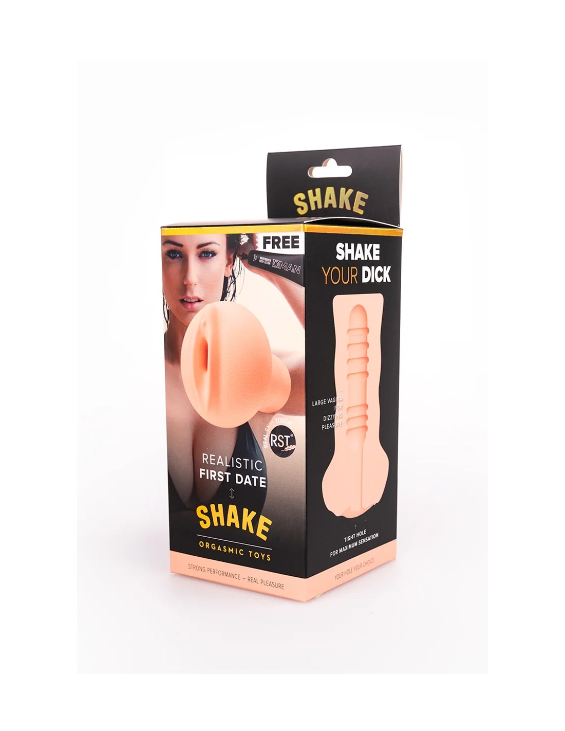 La marca Shake ofrece "First Date", un masturbador masculino premium que reproduce en 3 dimensiones un sexo femenino real con una entrada estrecha y una vagina suave, ancha y acogedora , a tamaño real, con textura hiperrealista Real Skin Touch.