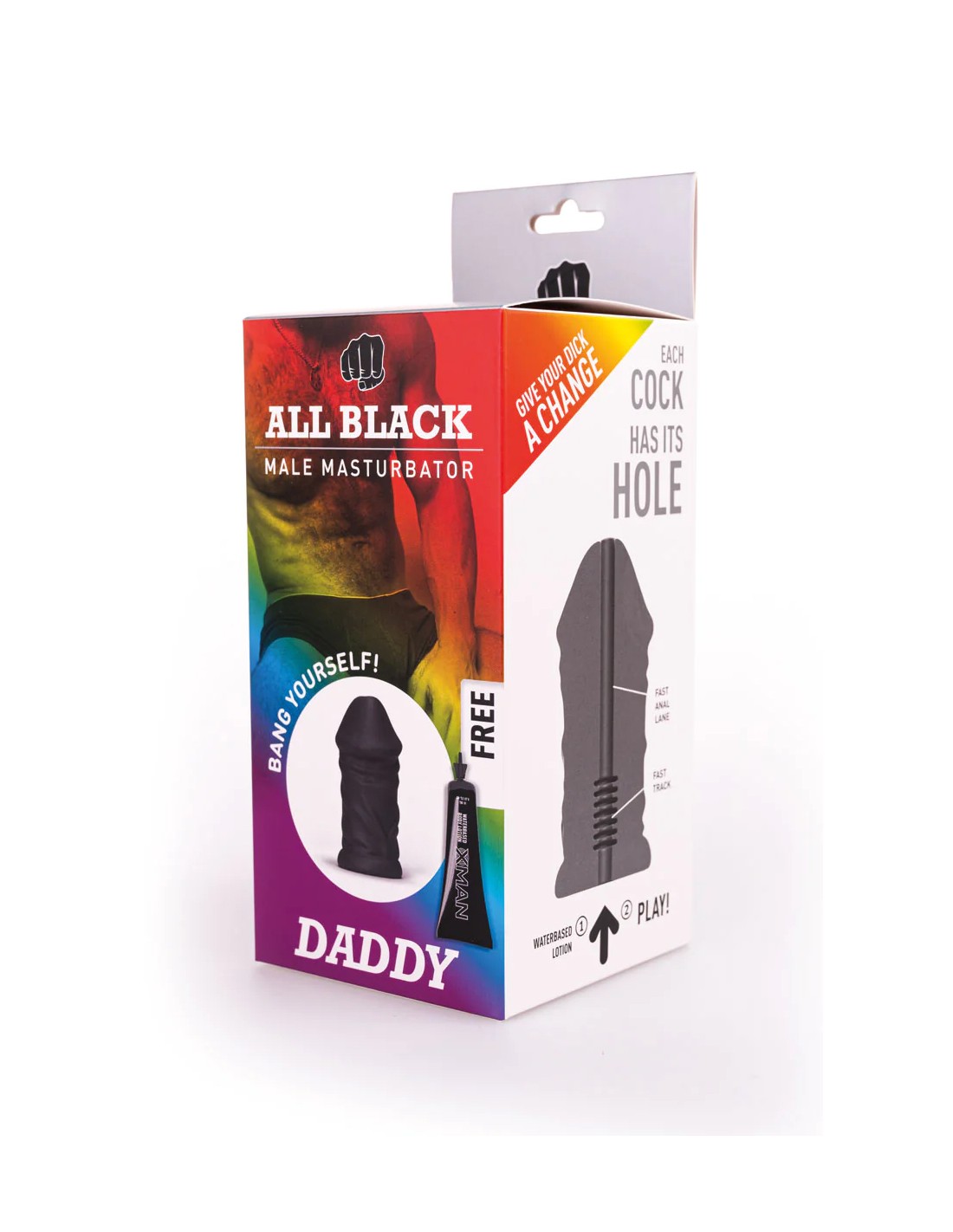 Con el masturbador para hombre Daddy, de la marca All Black, siente una experiencia orgásmica hiperrealista.