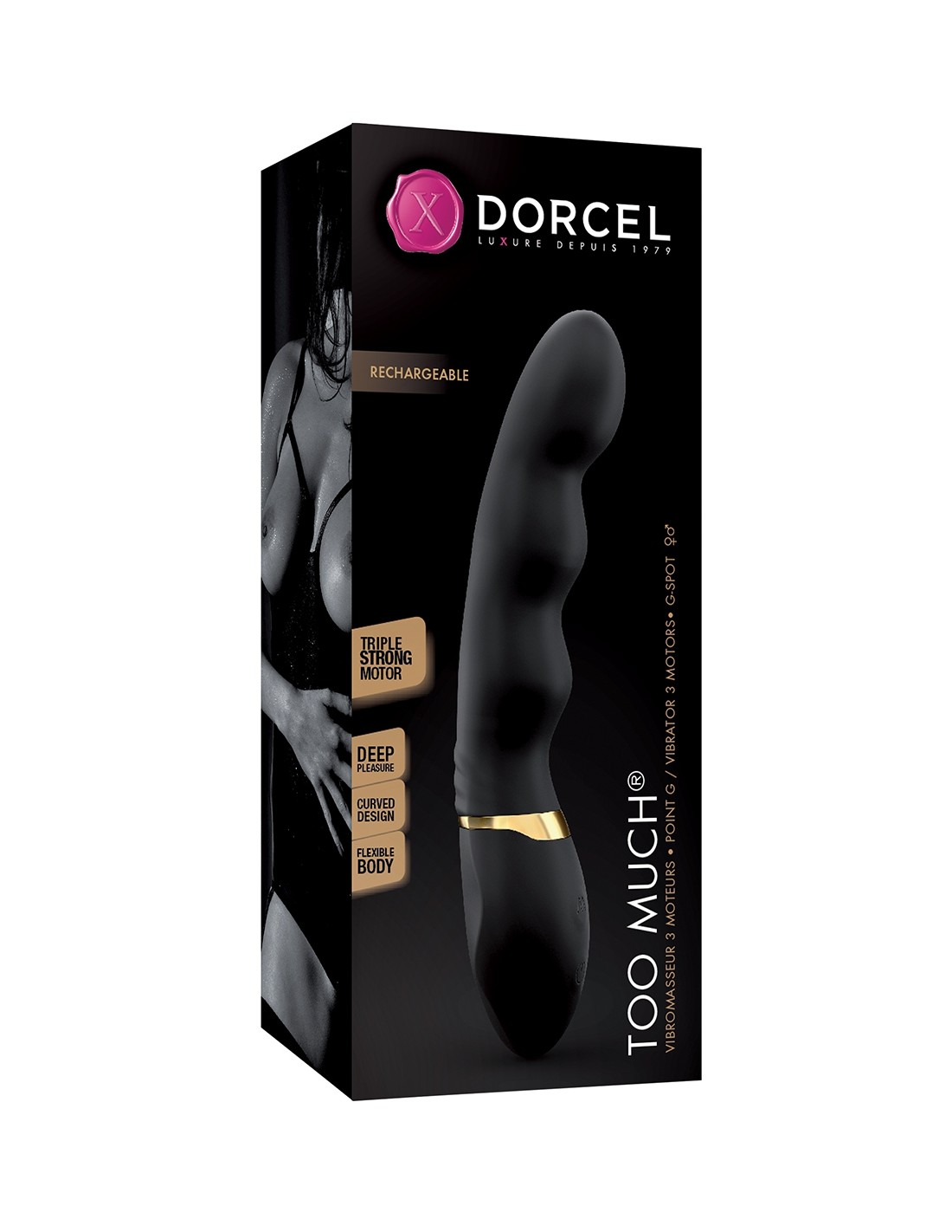 ¡Too Much 2.0 es el nuevo vibrador especial del punto G de Dorcel, equipado con 3 motores para permitirte alcanzar el máximo orgasmo!