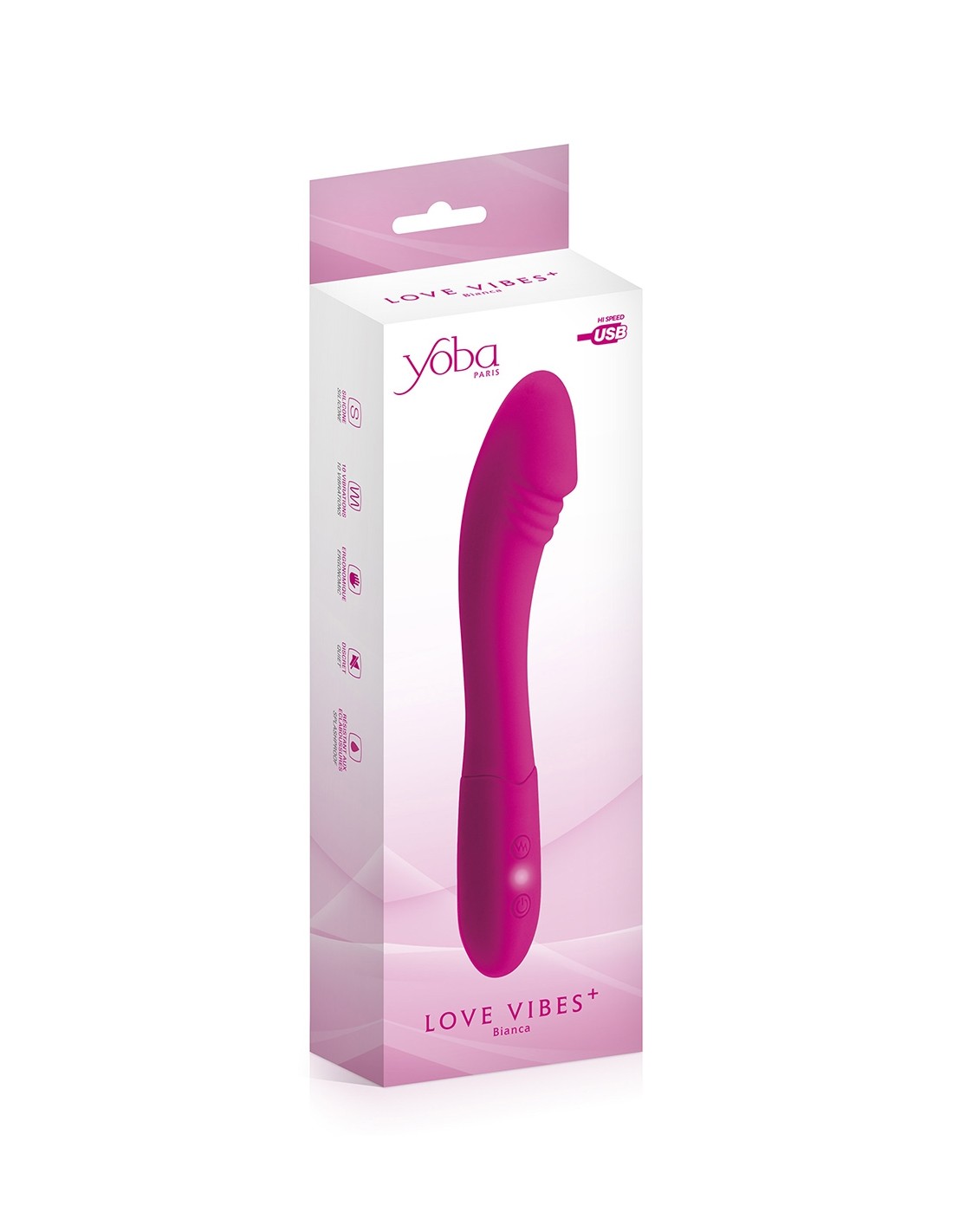 El vibrador Bianca G-Spot de Yoba es un juguete sexual muy suave en silicona Premium y ABS. Es ideal para la estimulación vaginal y en especial del punto G gracias a su forma curva y su cabeza en forma de glande.