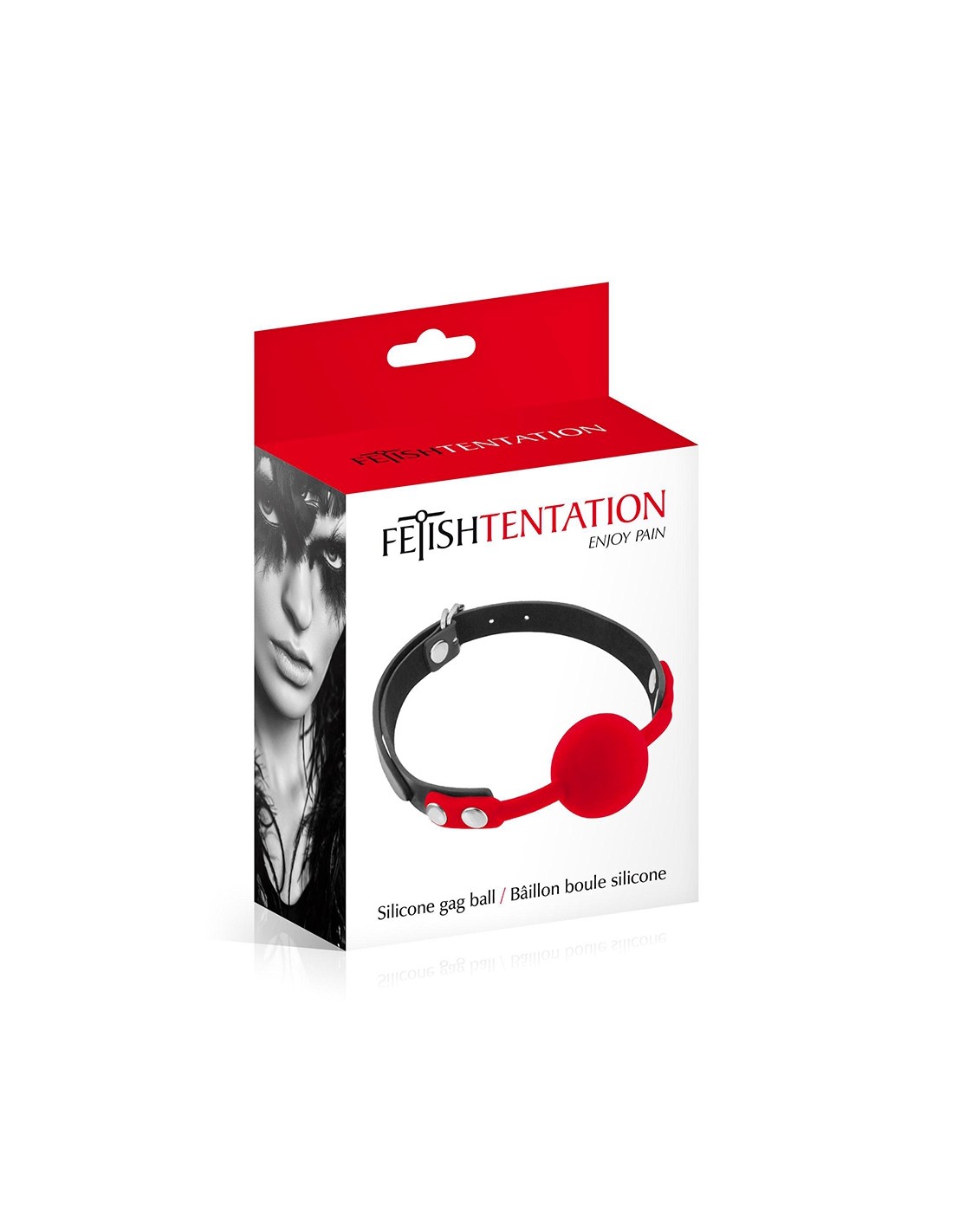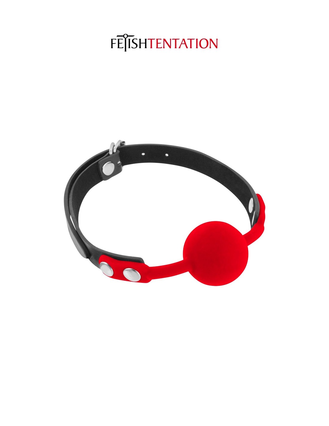 Bâillon boule (gagged ball) 100% silicone, pour imposer le silence à votre soumis(e) dans des conditions d'hygiène et de confort optimales, par Fetish Tentation.