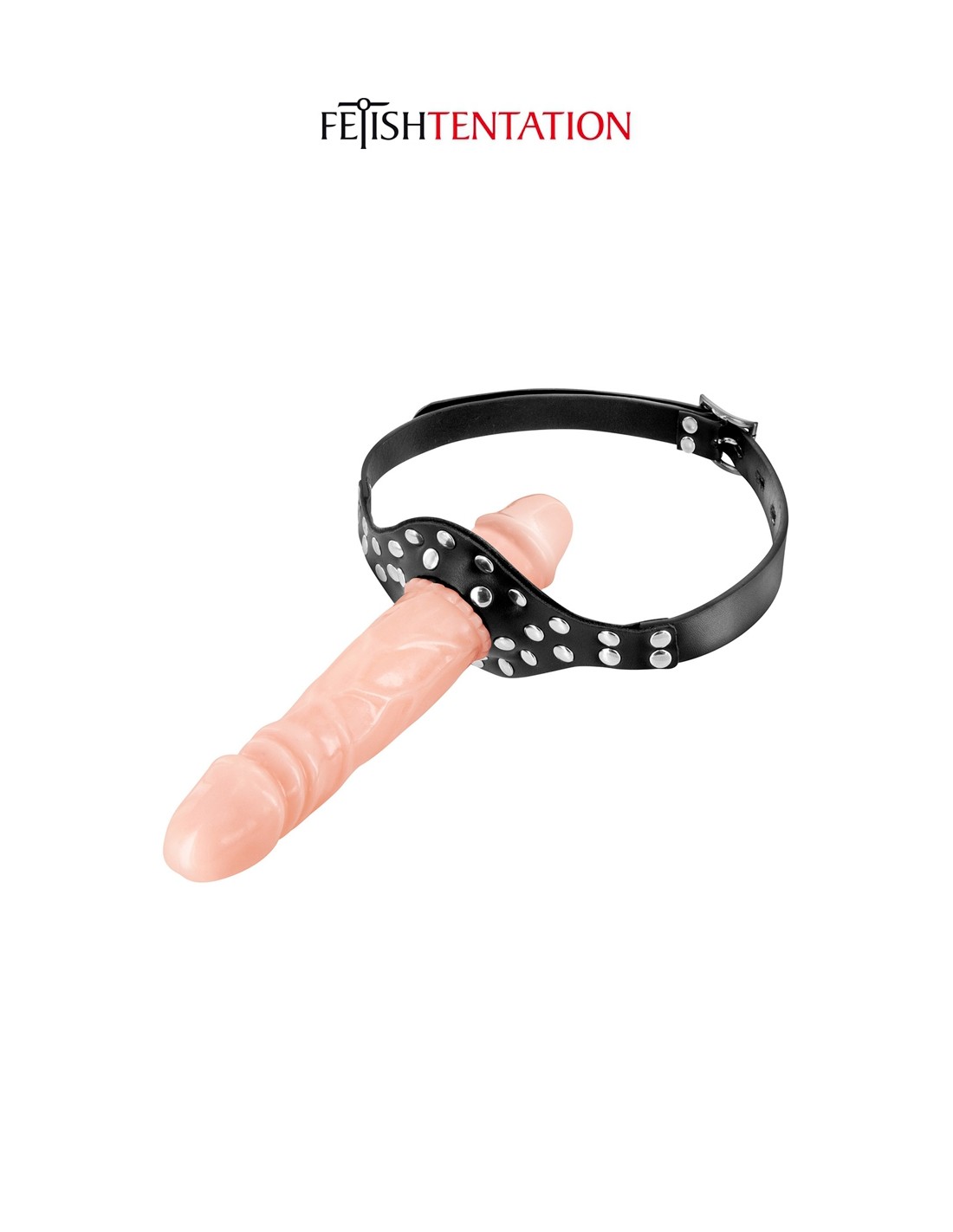 Ce bâillon "Pénis Double" Fetish Tentation oblige votre soumis (e) à garder en bouche un gode réaliste en forme de gland tout en vous donnant du plaisir grâce à un second gode externe fixé au bâillon.