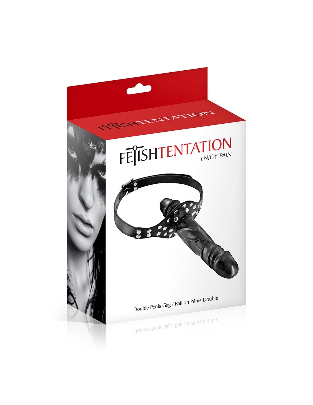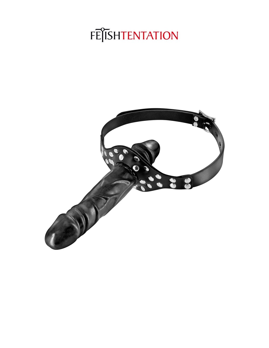 Ce baillon "Pénis Double" Fetish Tentation oblige votre soumis (e) à garder en bouche un gode réaliste en forme de gland tout en vous donnant du plaisir grâce à un second gode externe fixé au baillon.