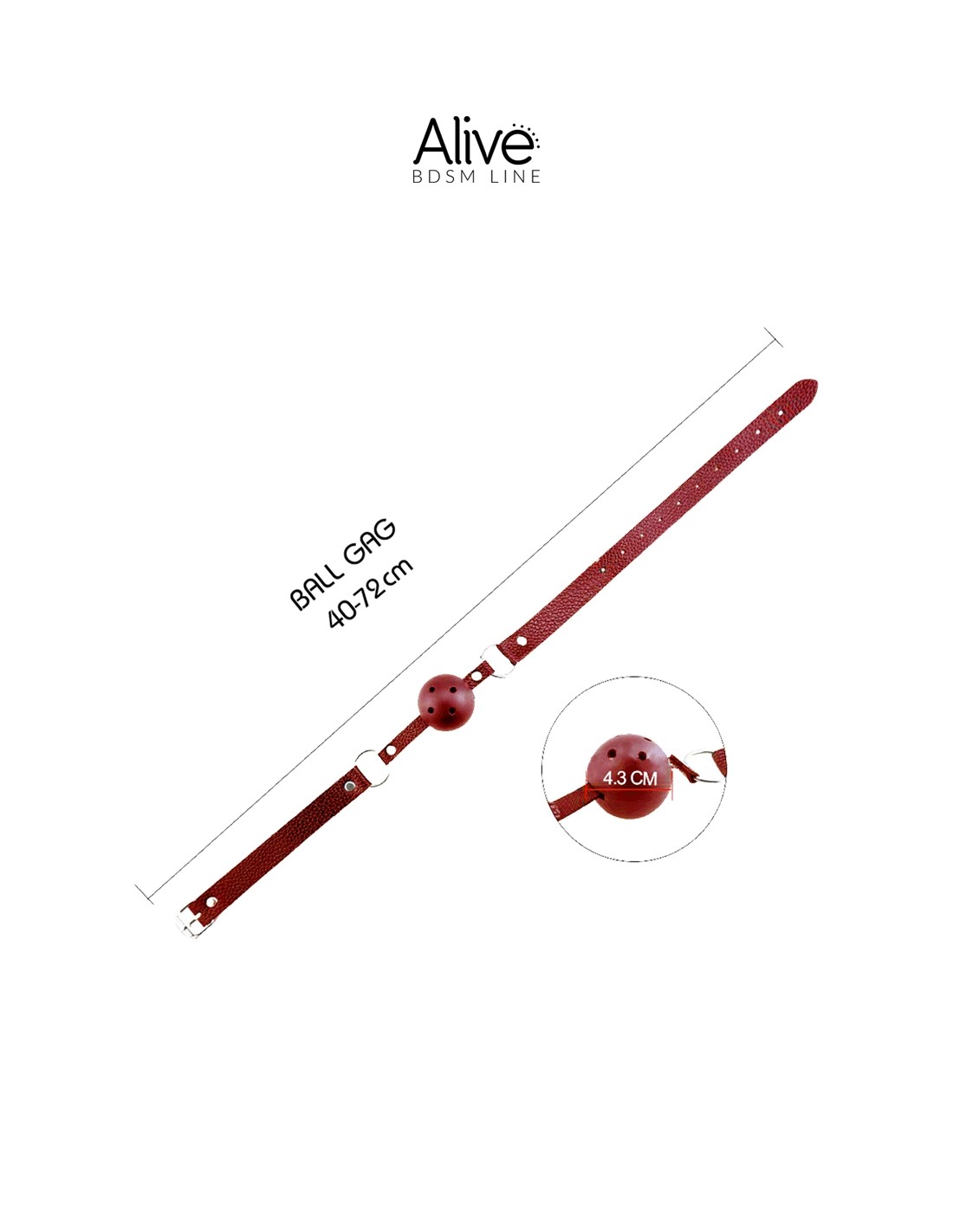 Fabriquée en simili cuir, la sangle tour de cou est réglable. La boule est conçue en ABS, rigide, creuse, et dotée de multiples perforations pour faciliter la respiration.