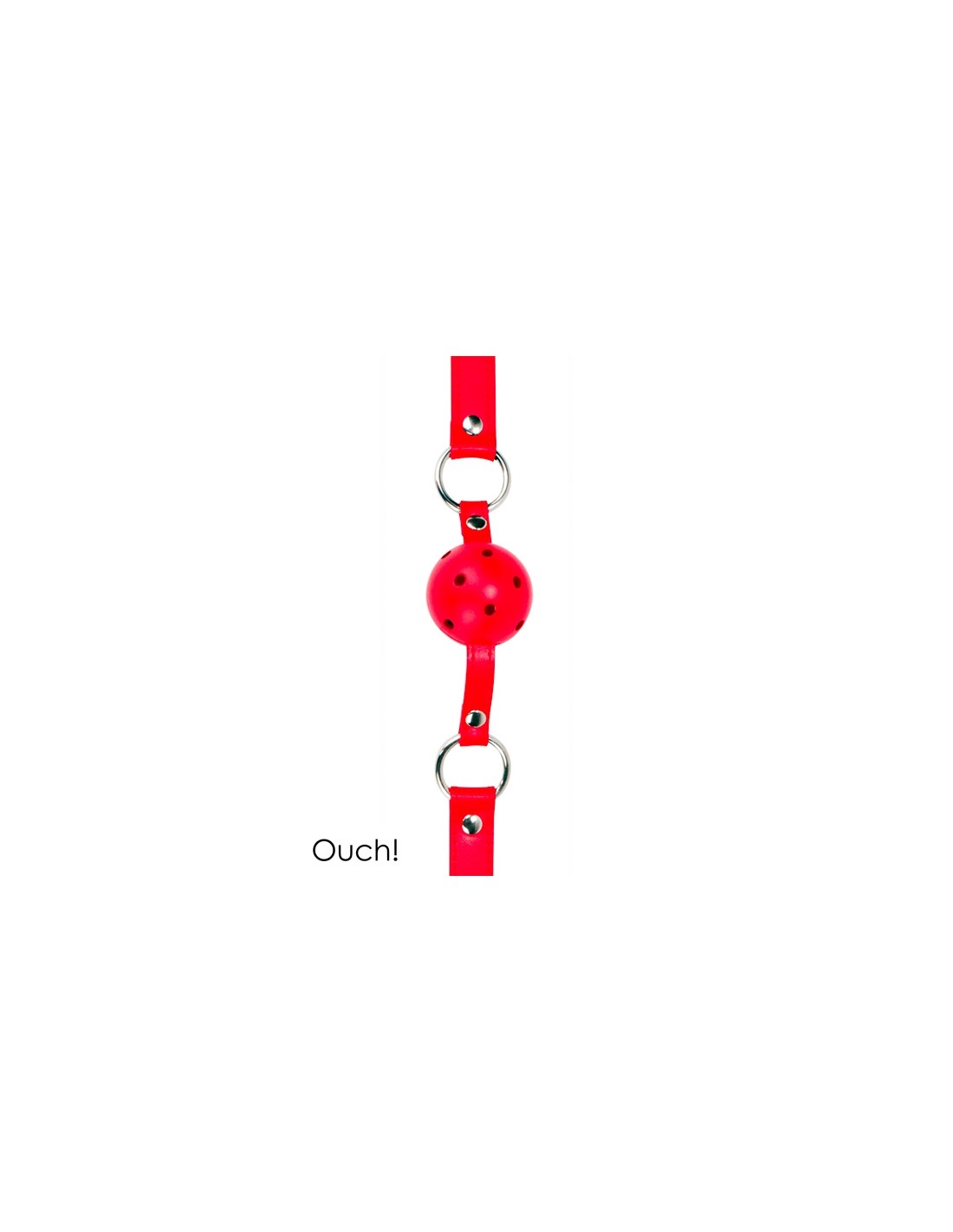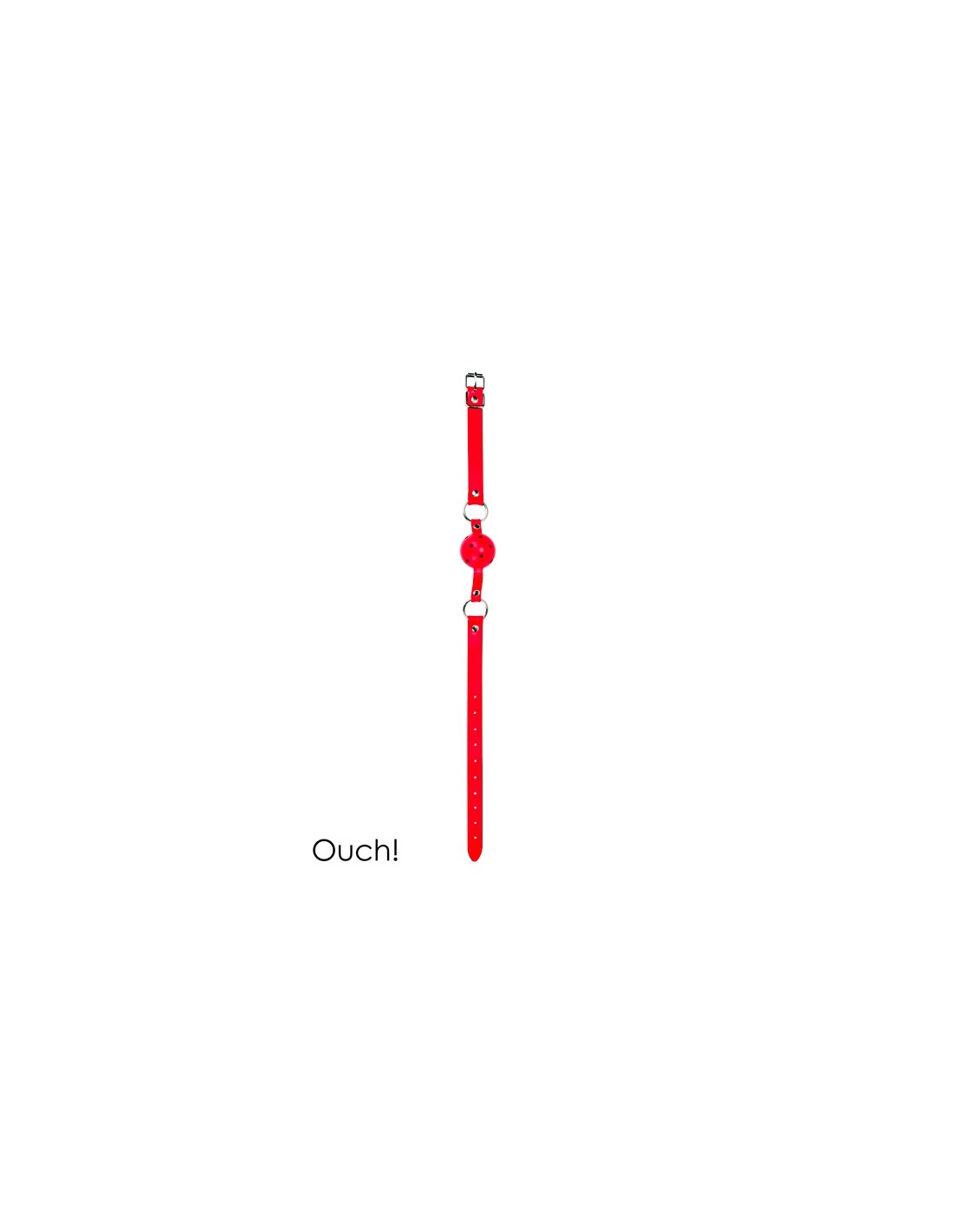 Le Bâillon BDSM Ball Gag, proposé par la marque Ouch!, est un bâillon boule de qualité avec une balle dure en ABS traversée par des petits trous facilitant la respiration de votre soumis (e).