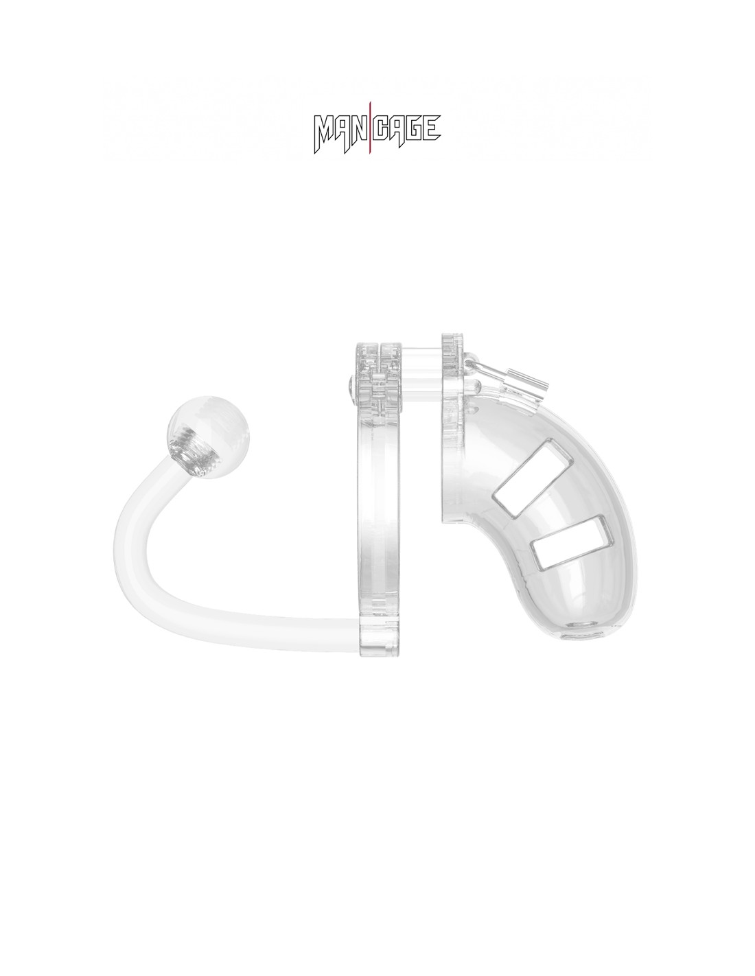 La marque ManCage, spécialiste des cages de chasteté masculine, présente son modèle ManCage n°10, une cage de chasteté transparente haute qualité de 9 cm de long avec un plug anal intégré amovible permettant d'ajouter de nouvelles sensations.