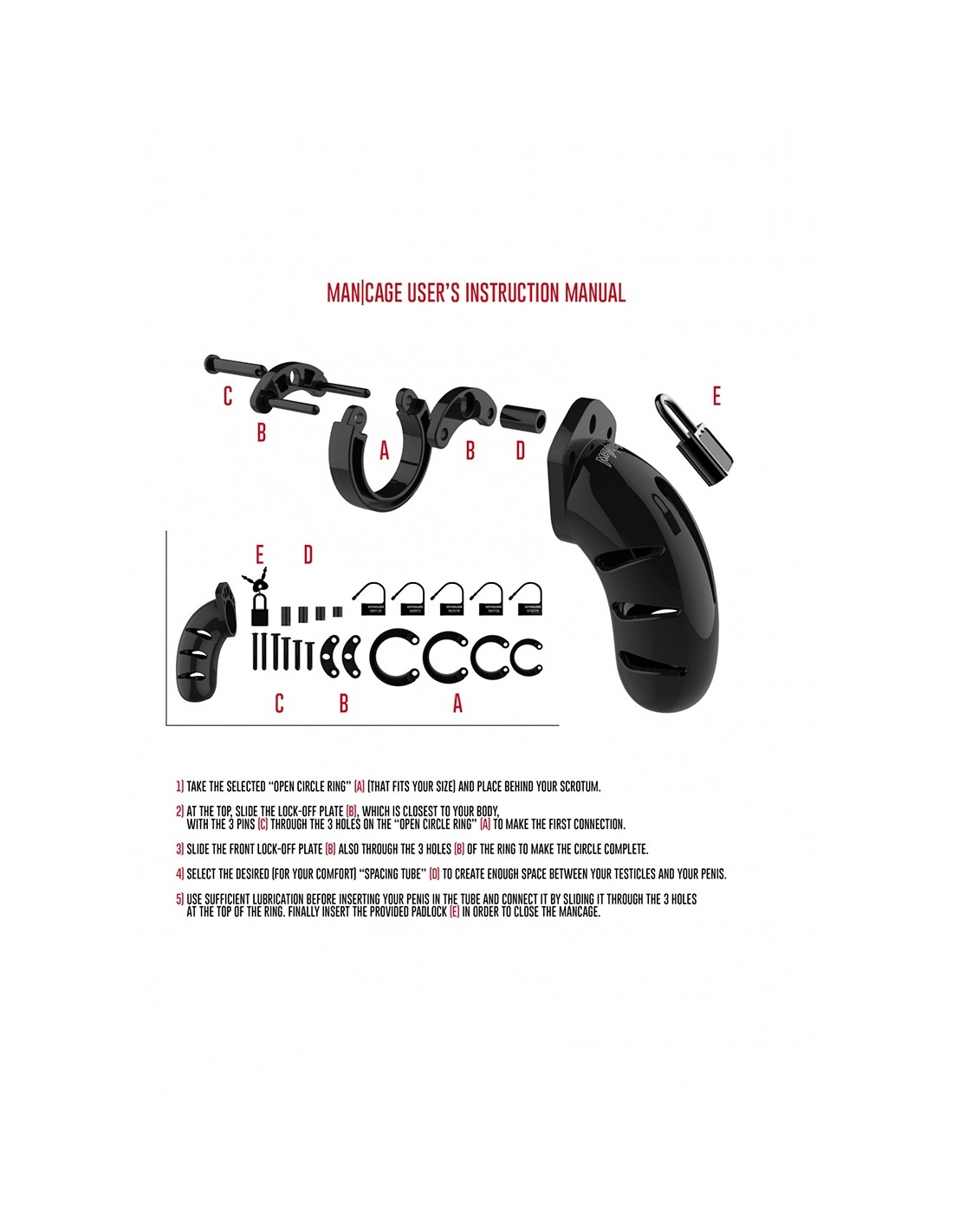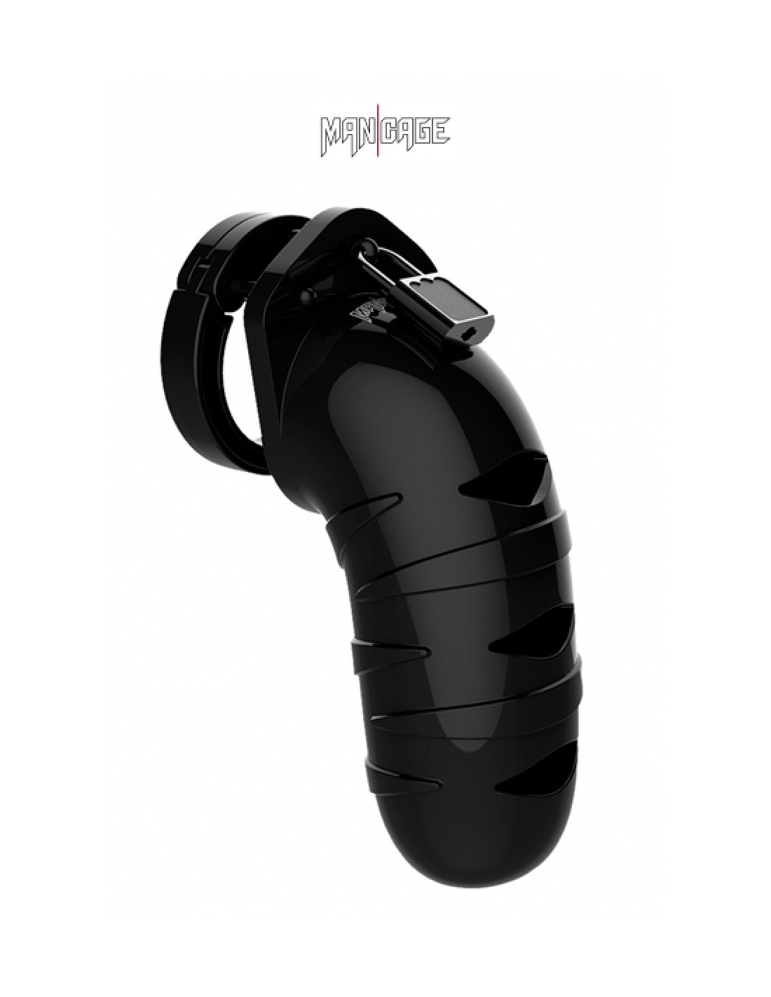 La marque ManCage, spécialiste des cages de chasteté masculine, présente son modèle ManCage n°05, une cage de chasteté noire haute qualité de 14 cm de long.