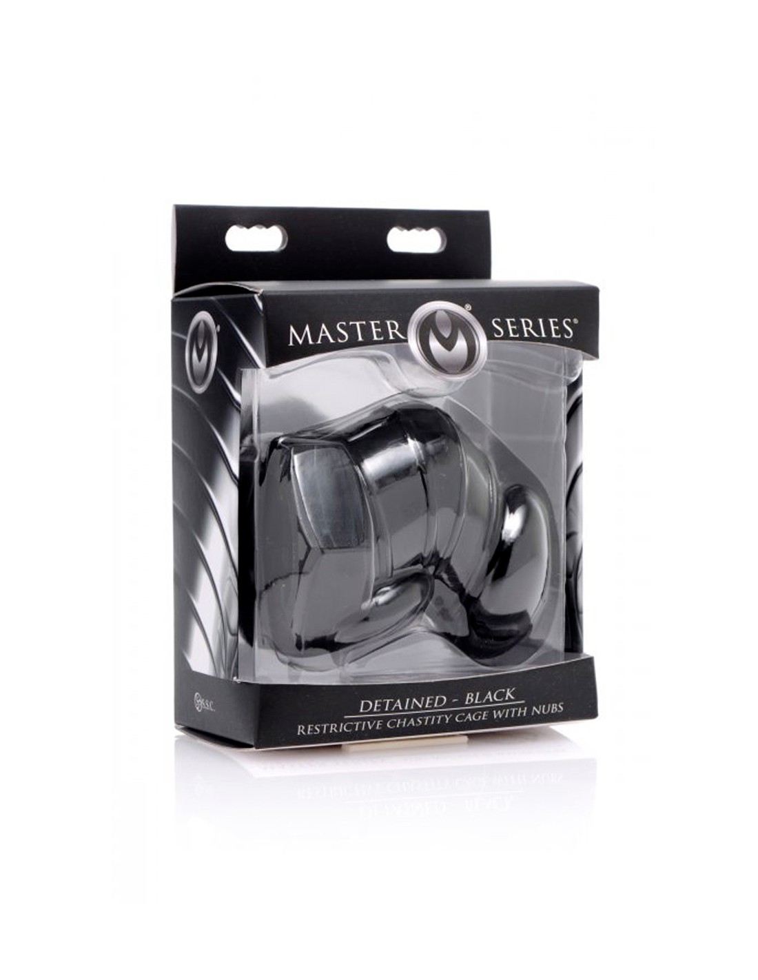Intégralement fabriquée en caoutchouc TPR, la cage de chasteté "Detained Black Restrictive Chastity Cage with Nubs" est la meilleure solution pour expérimenter l'emprisonnement du pénis et empêcher la moindre érection au quotidien tout en conservant un minimum de confort et un maximum de discrétion. Parallèlement, de petits reliefs tapissent lintérieur de la cage et taquinent le sexe de votre soumis alors que celui-ci est encagé.