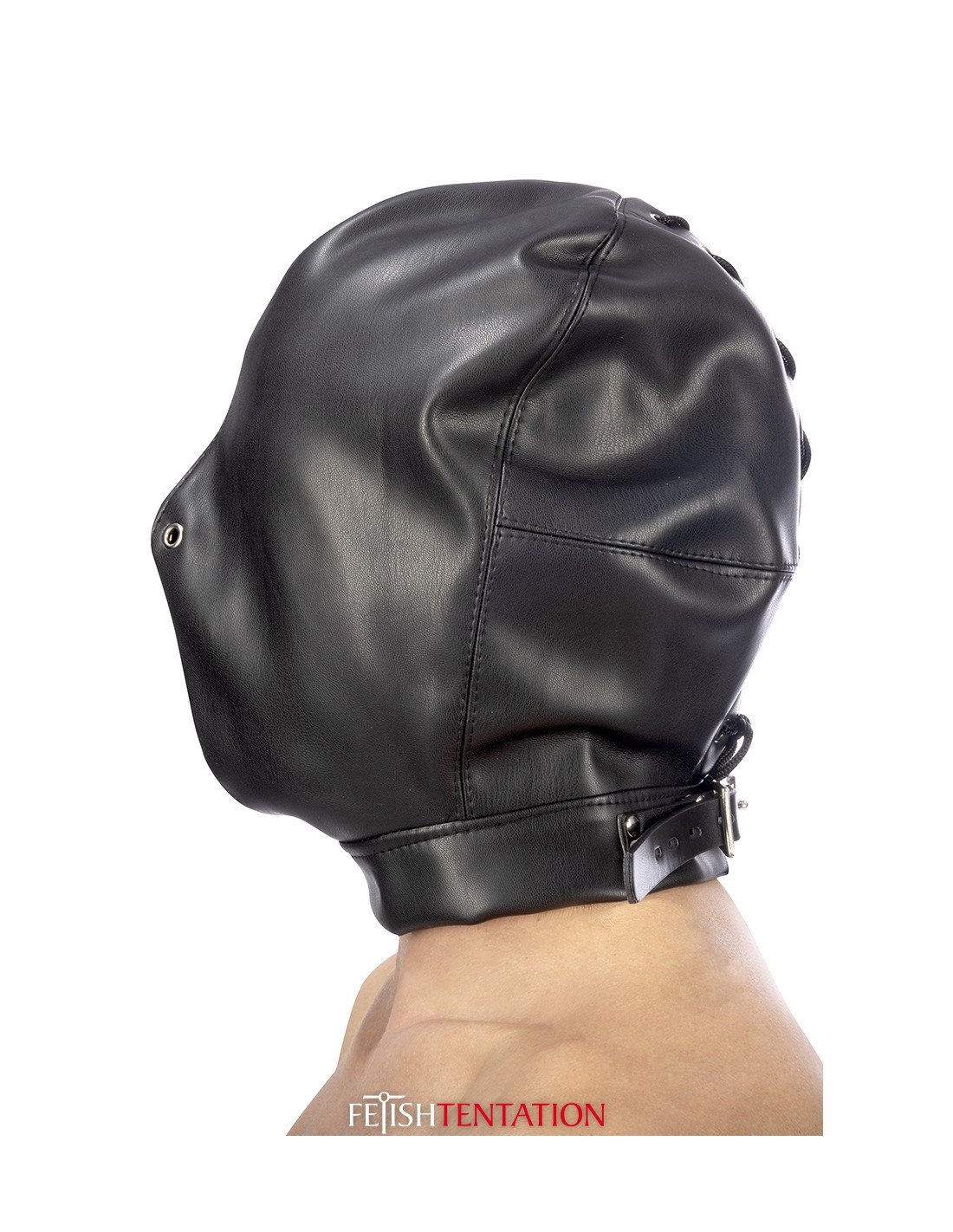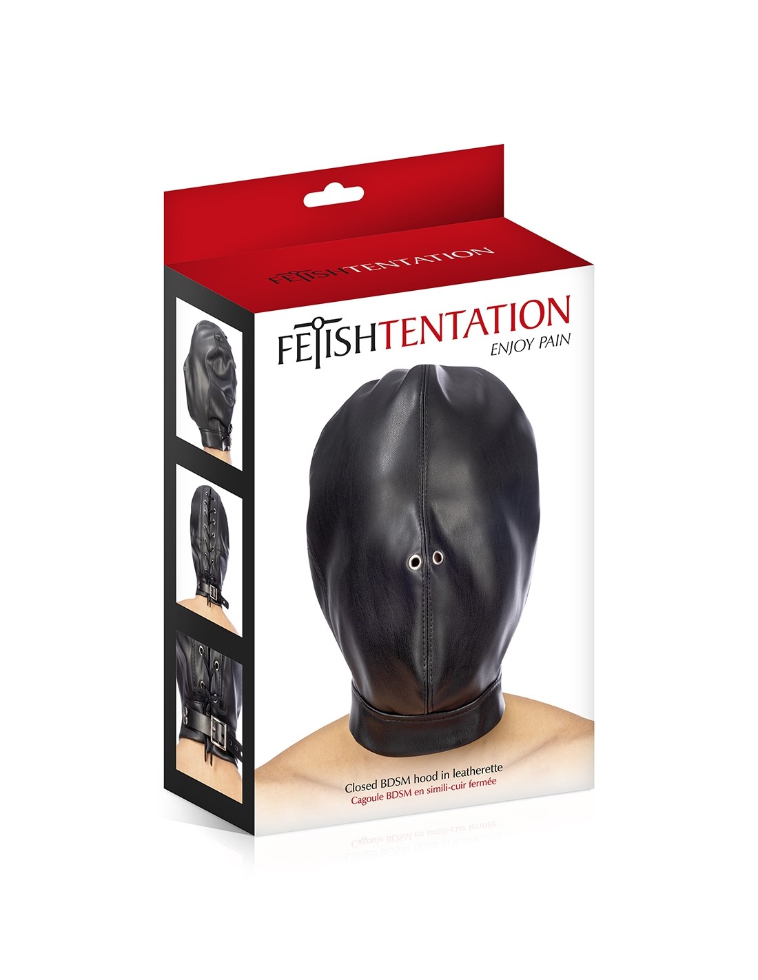 La cagoule de soumission intégrale Fetish Tentation prive votre esclave de la plupart de ses sens et le (la) rend dépendant(e) de son maitre (esse). Elle permet toutefois de respirer (grâce à deux petites aérations situées au niveau des narines) et d'entendre sans difficulté.