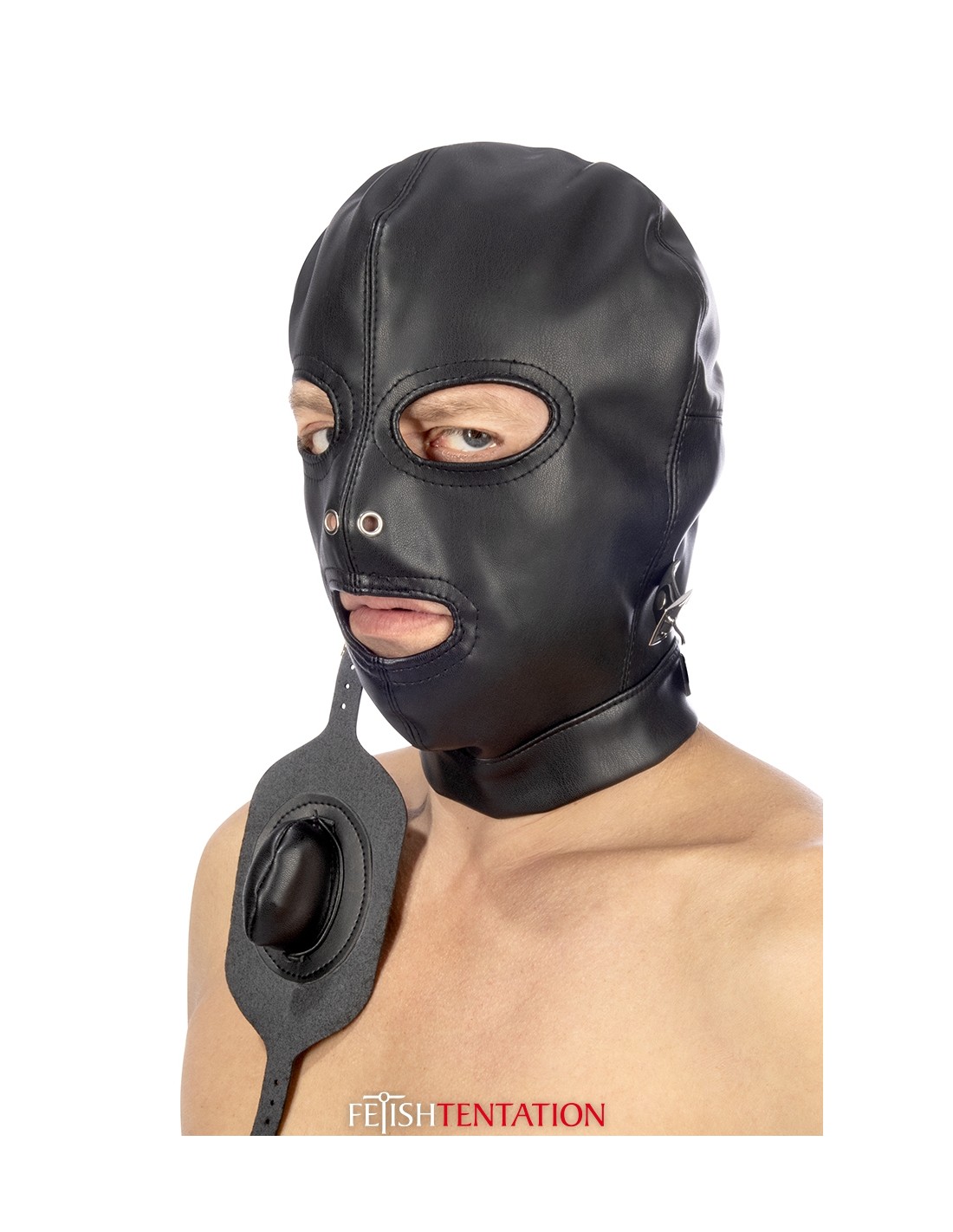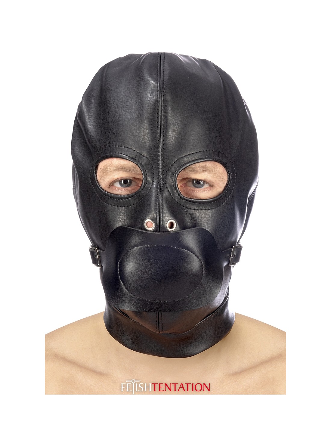 - Cagoule BDSM avec ouverture pour les yeux et bâillon amovible