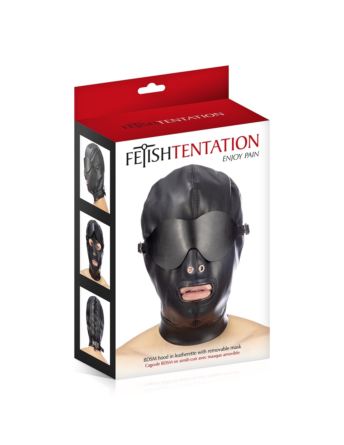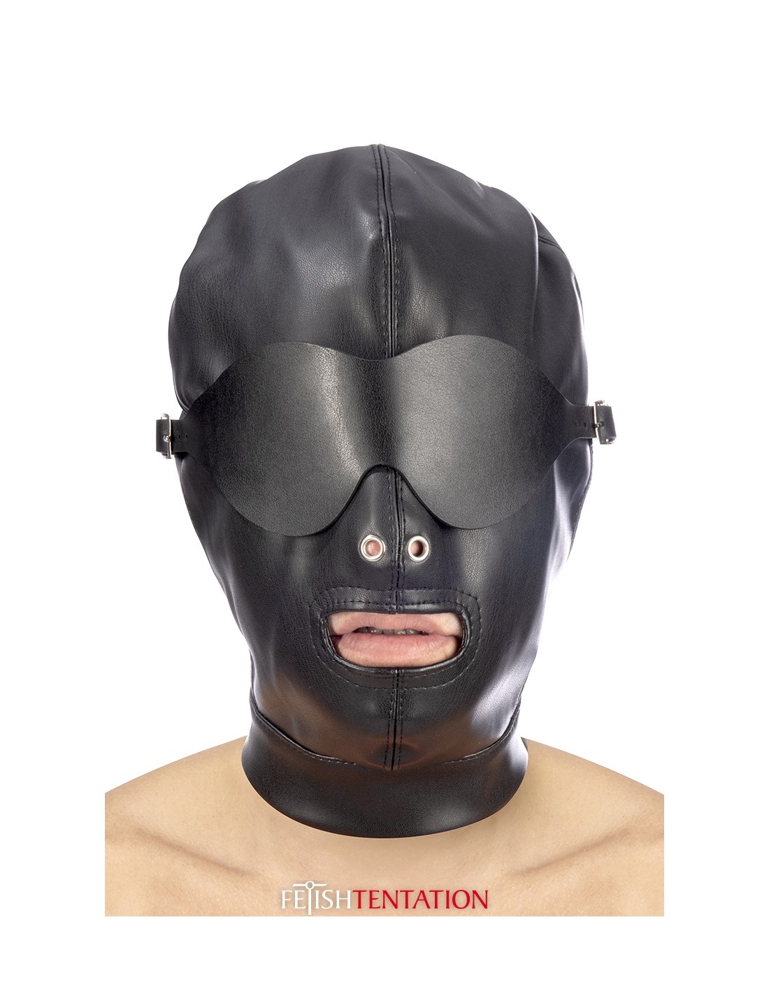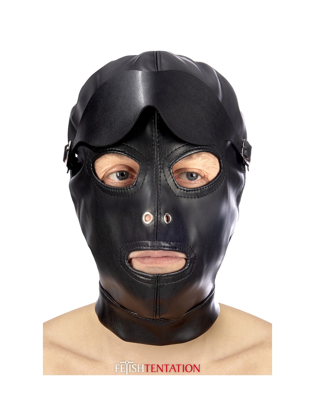 - Cagoule BDSM avec ouverture pour la bouche et bandeau amovible pour les yeux