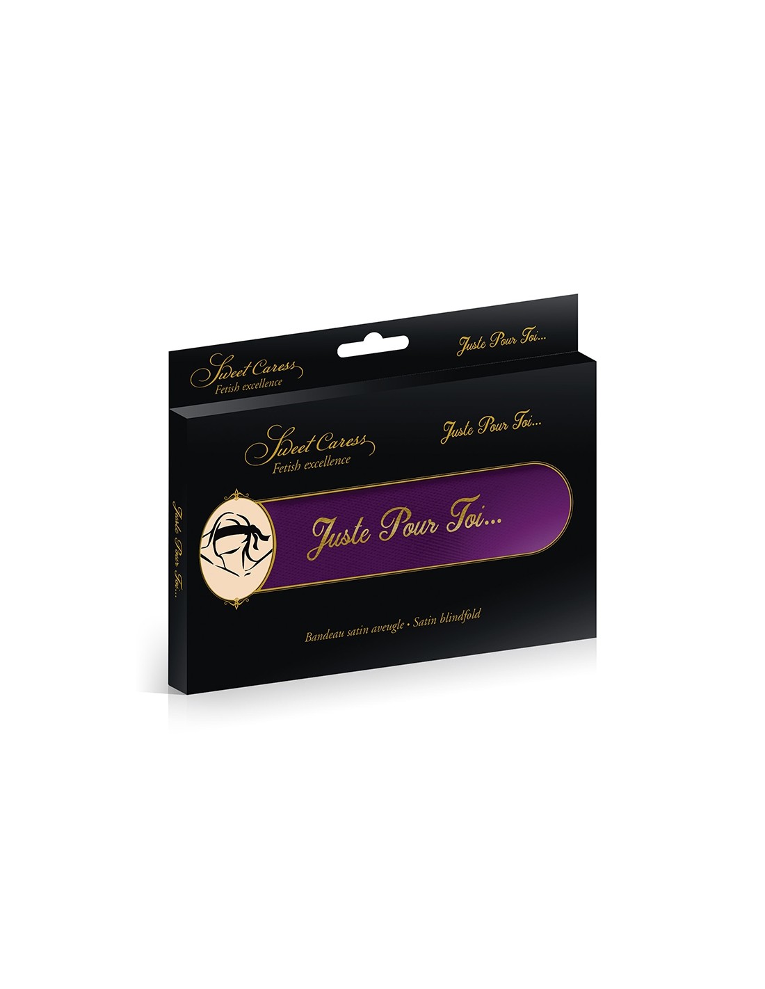 La marque Sweet Caress propose un bandeau pour les yeux de couleur pourpre avec dessus l'inscription "juste pour toi" écrite en doré.