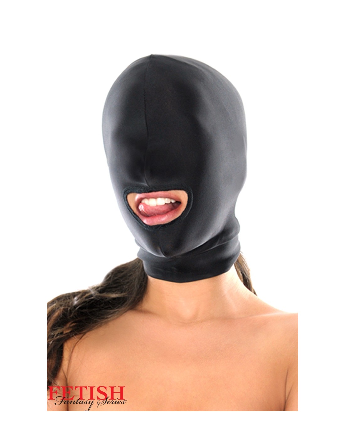 Cette confortable cagoule est prévue pour s'étirer complètement sur la tête. Son tissu en Spandex est mince et léger, il laisse respirer et entendre. Mais votre soumis(e) ne peut rien voir et sa bouche reste offerte...