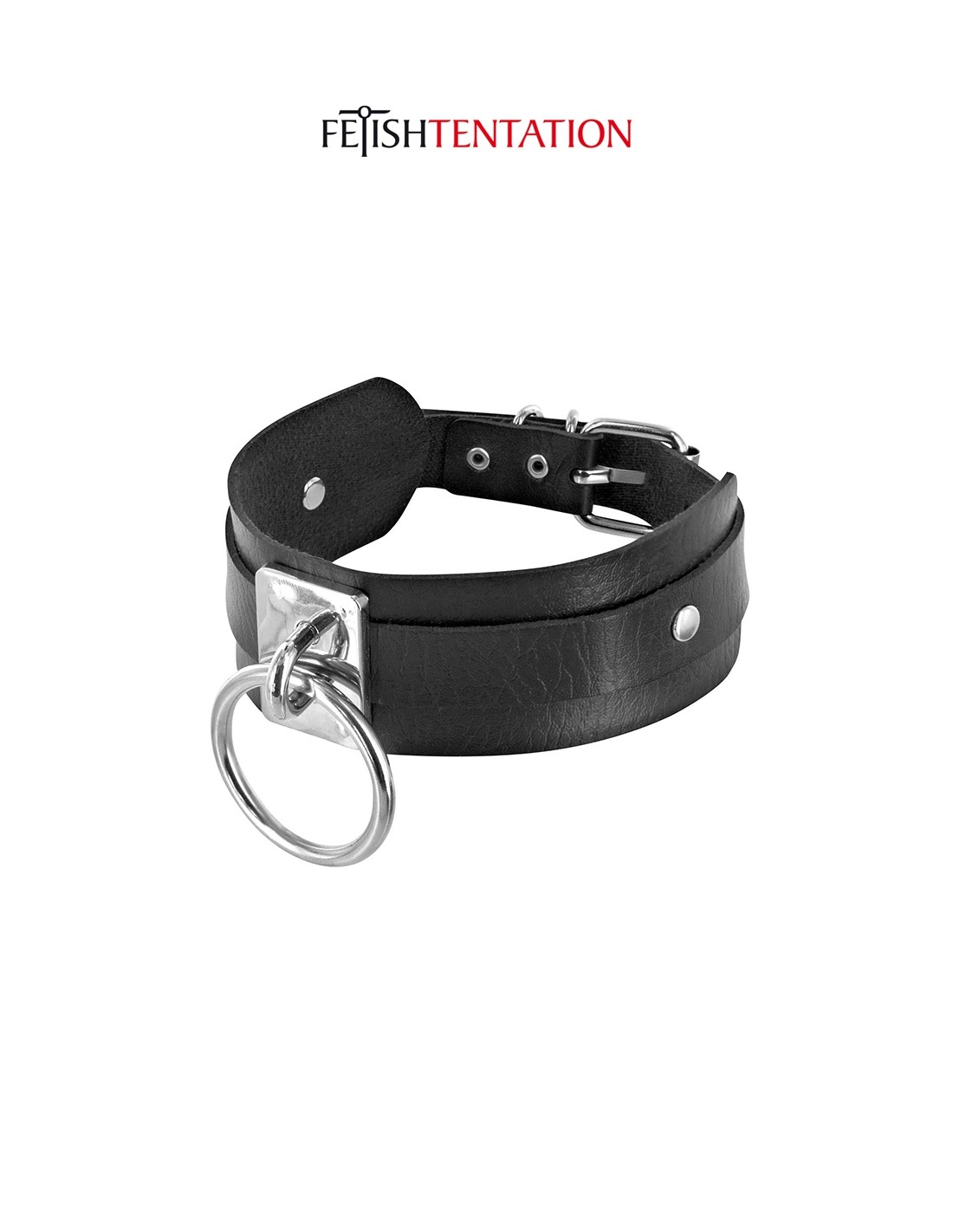 Accessoire Fashion et / ou Fétichiste selon vos usages, la marque Fetish Tentation propose un collier large et ras de cou en faux cuir, doté d'un anneau en métal permettant d'y accrocher une laisse ou une contrainte.