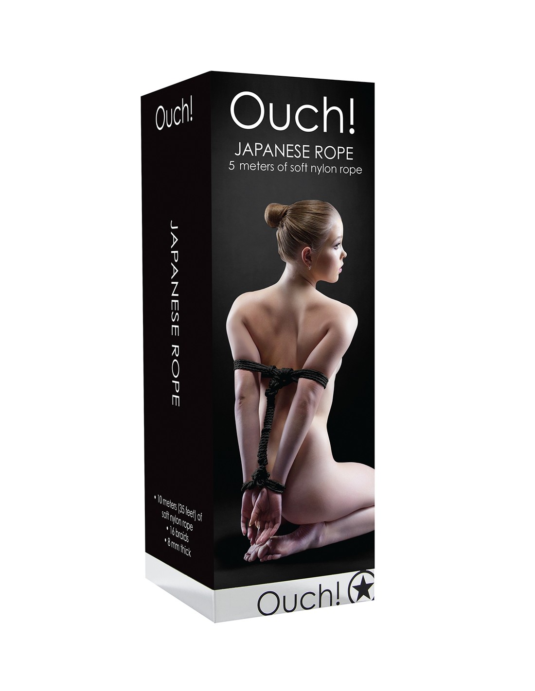 Pour les amateurs de bondage japonais, la marque Ouch! propose cette solide corde noire "Japanese Rope", d'une longueur de 5 mètres, spéciale Shibari et jeux de bondage.