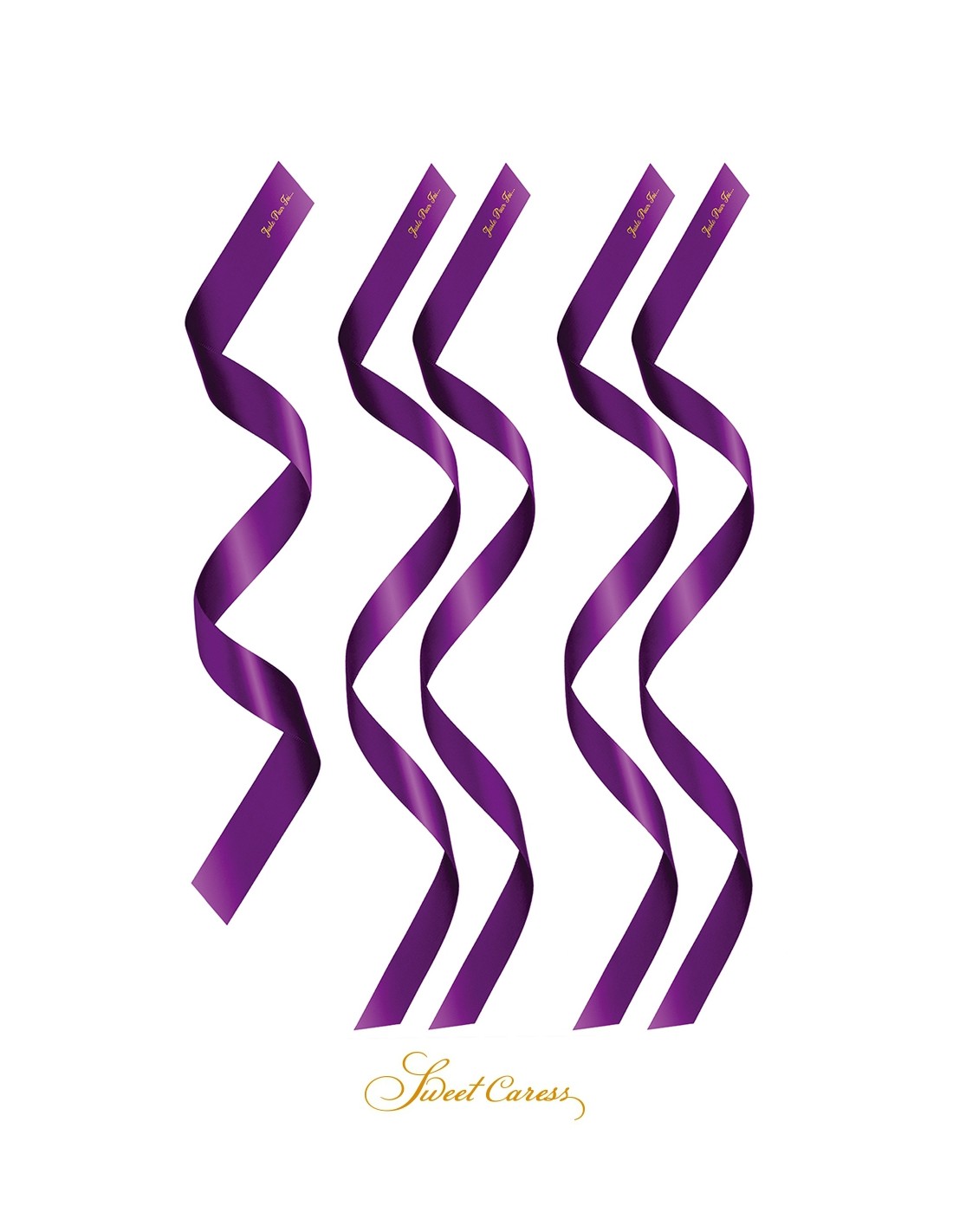 Les 5 attaches sont en satin pourpre, avec l'inscription "juste pour toi" imprimée sur chacune d'elles.