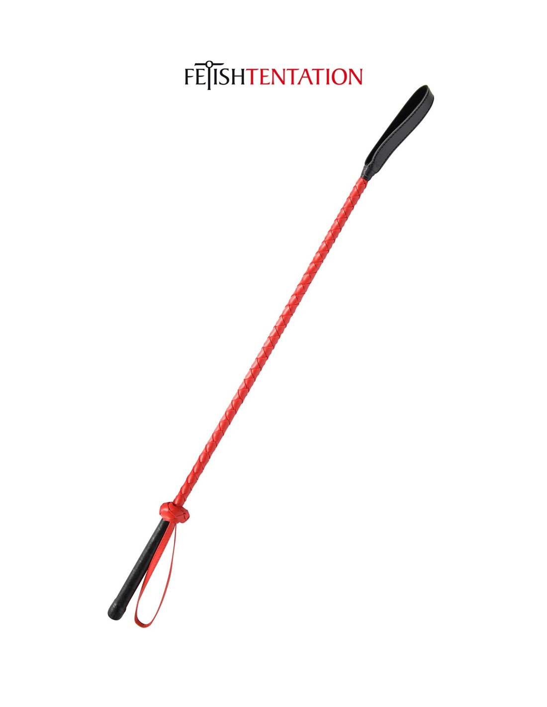 Flexible et maniable, cette cravache SM rouge et noire de 71 cm de long fera un parfait instrument de punition pour éduquer votre partenaire, par la marque Fetish Tentation.