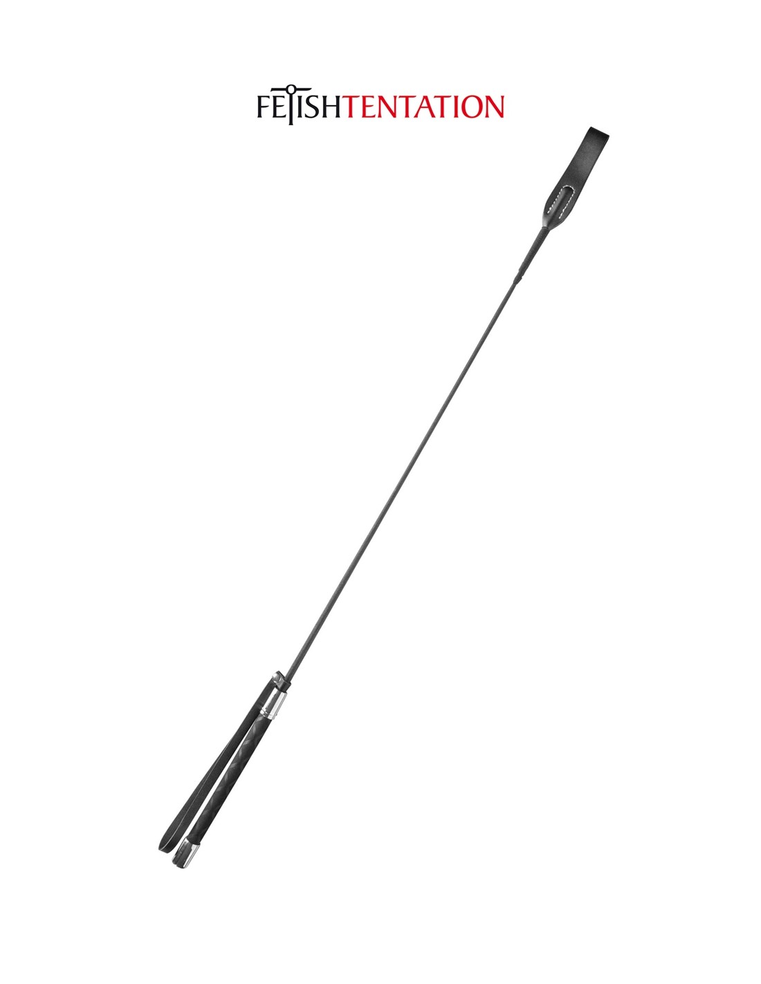 Flexible et nerveuse, cette cravache SM noir et métal de 71 cm de long constitue un parfait accessoire de punition pour éduquer votre partenaire, par la marque Fetish Tentation.